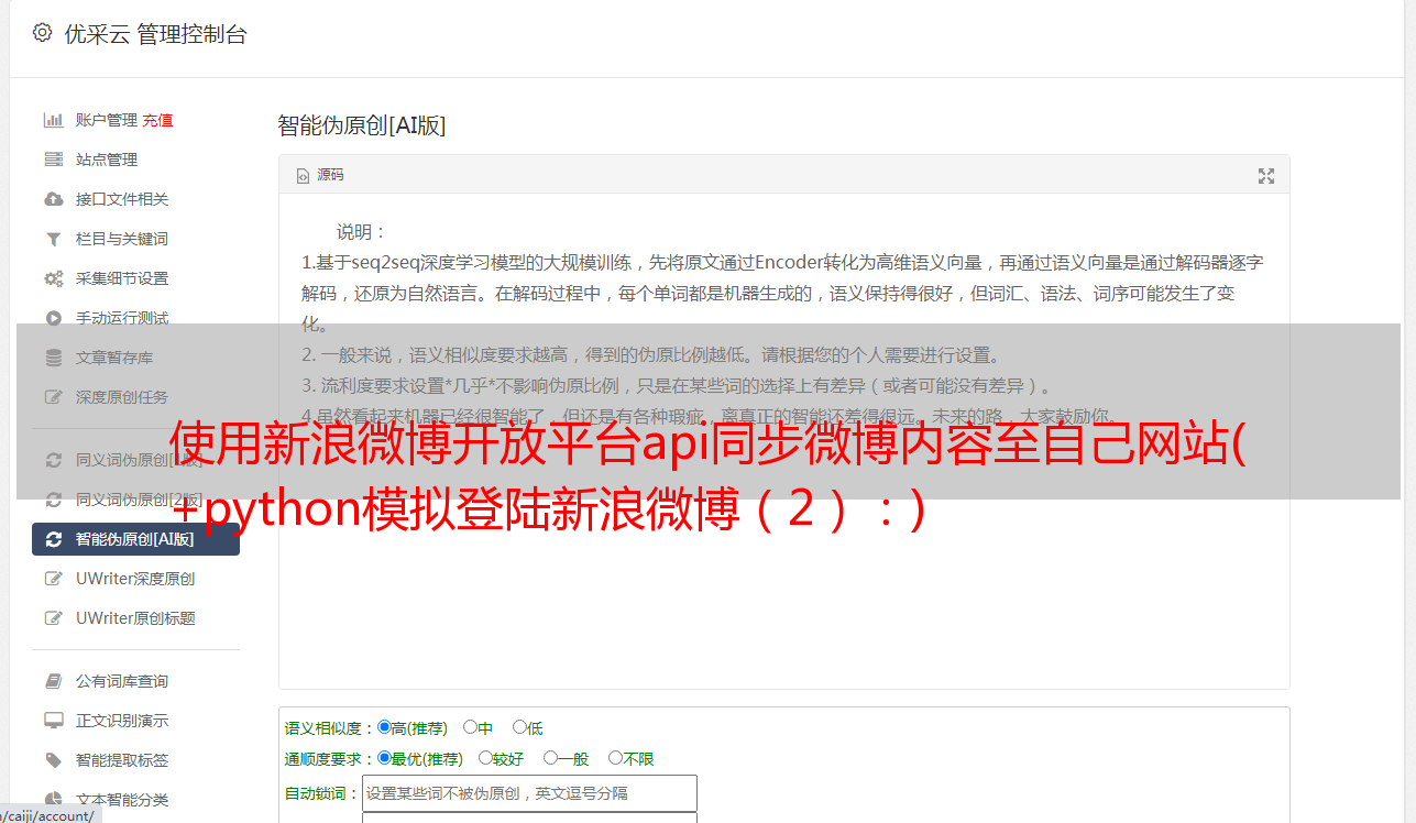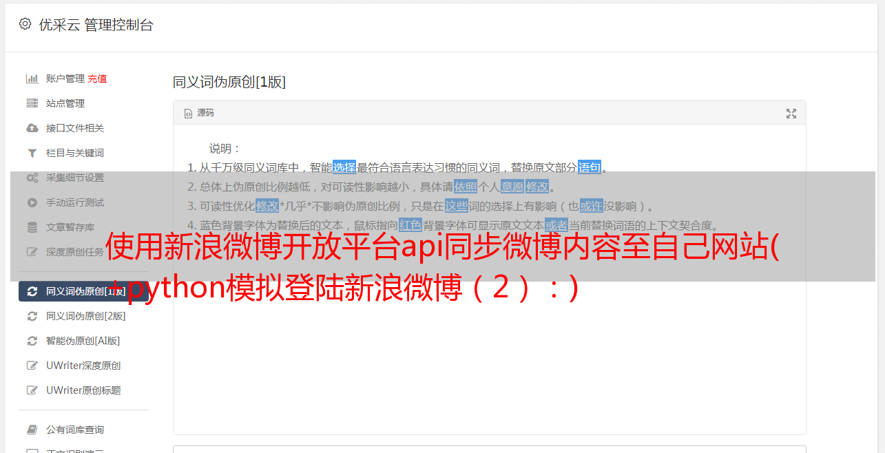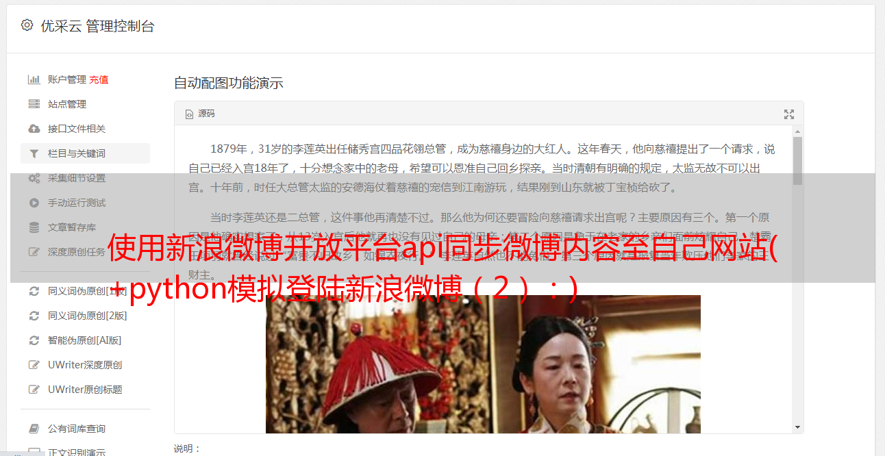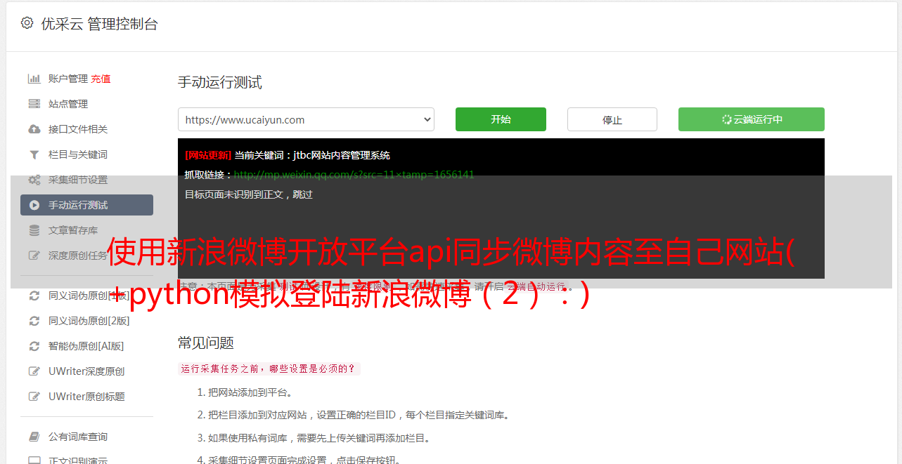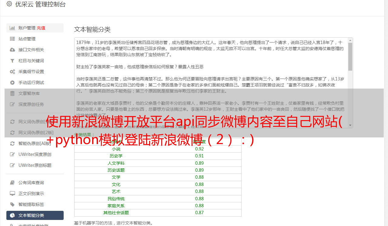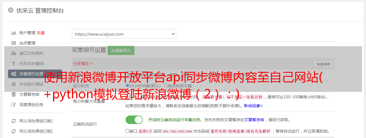优采云 发布时间: 2022-02-01 17:07使用新浪微博开放平台api同步微博内容至自己网站(