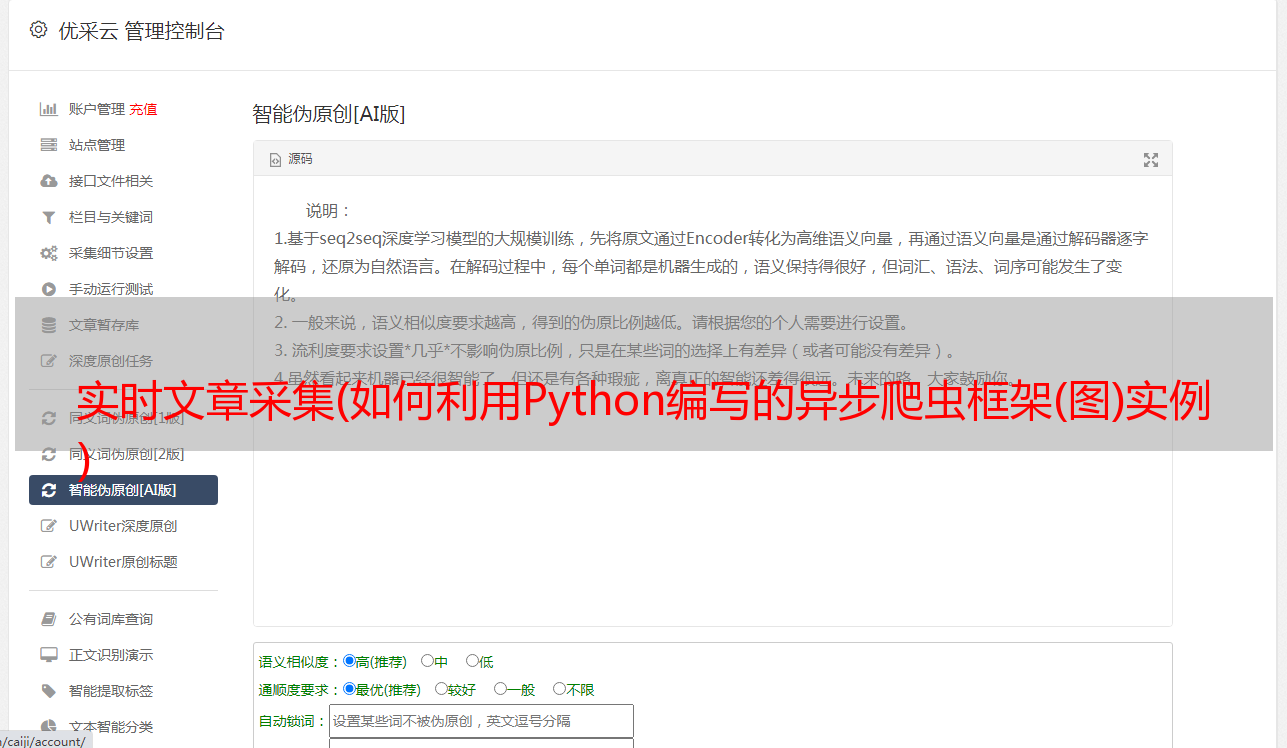 实时文章采集(如何利用Python编写的异步爬虫框架(图)实例 )