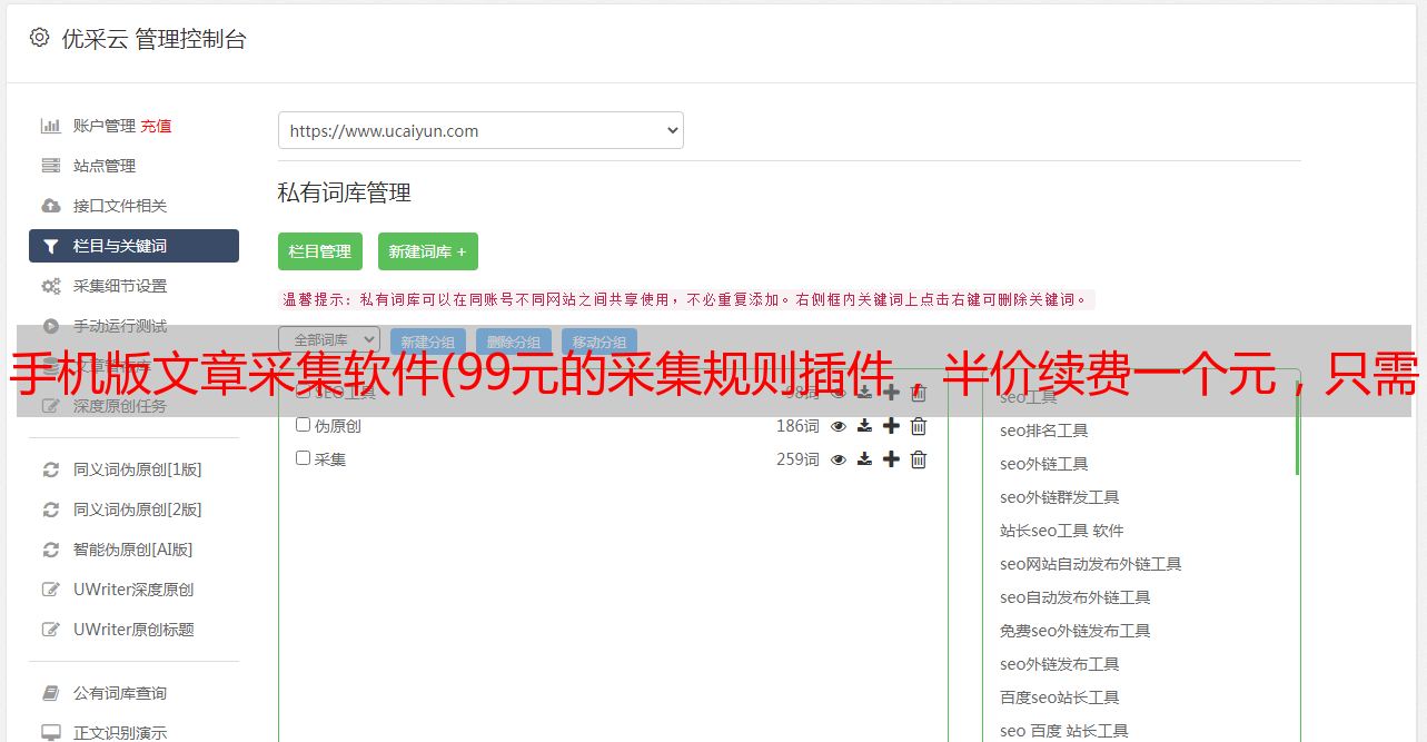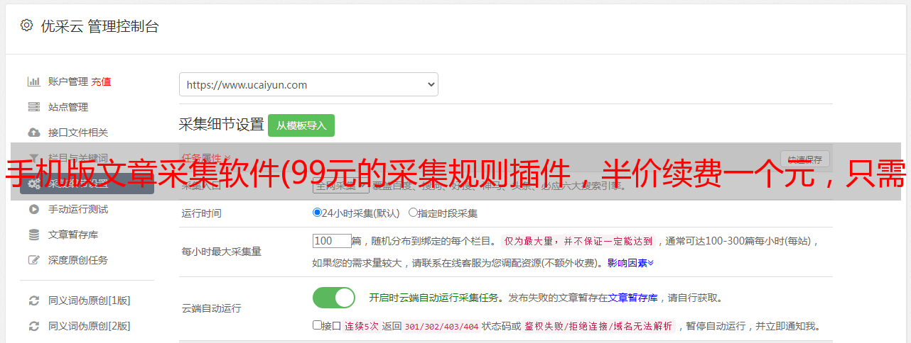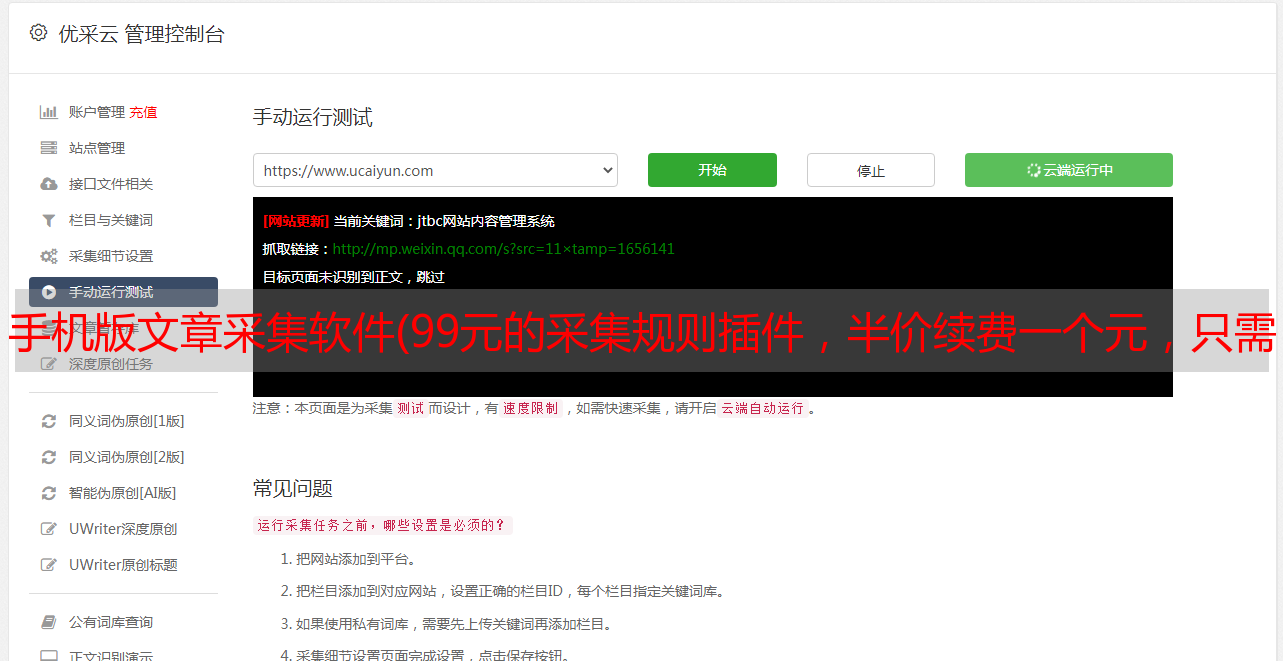 优采云 发布时间: 2022-02-01 18:03手机版文章采集软件(99元的采集规则插件,半价续费一个元,只需半价!