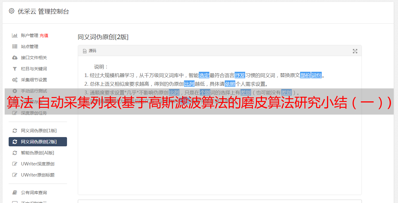 优采云 发布时间: 2022-02-01 22:12算法 自动采集列表(基于高斯滤波算法的磨皮算法研究小结(一))