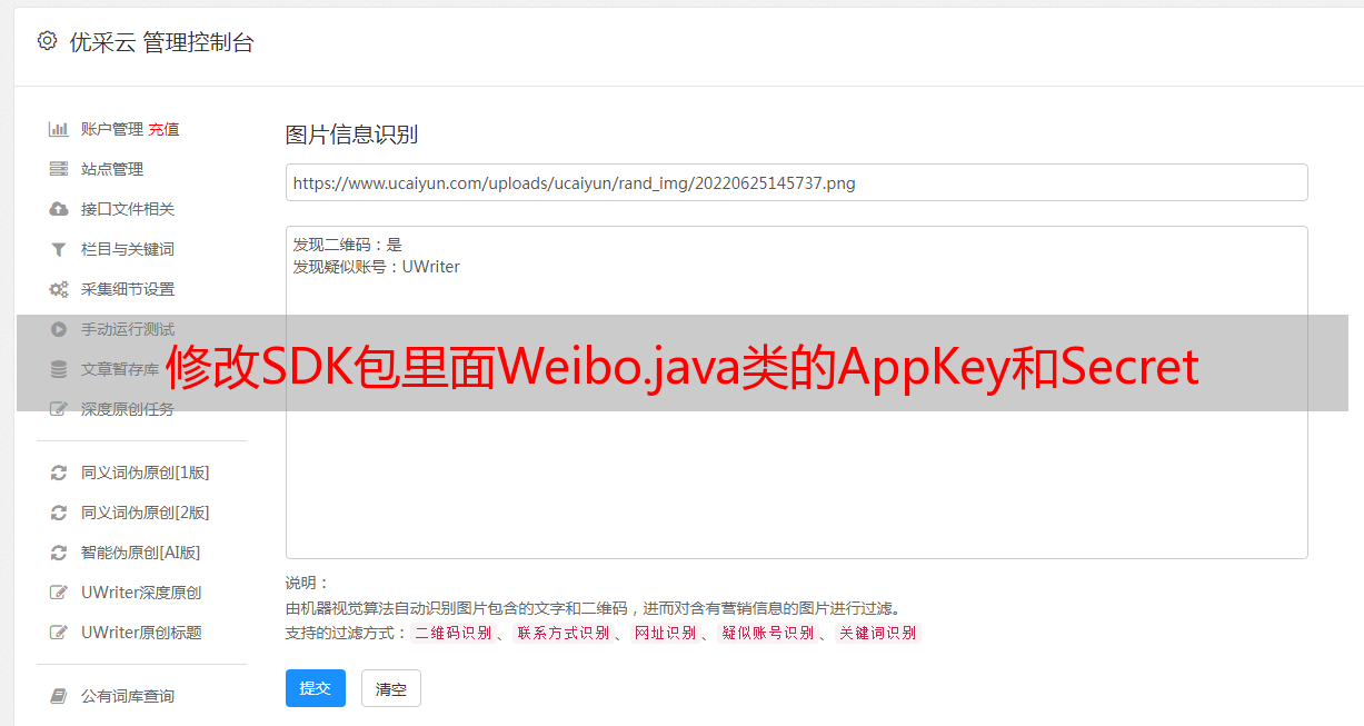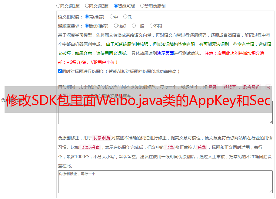 优采云 发布时间: 2021-04-30 01:00修改SDK包里面Weibo.java类的A*敏*感*词*ey和Secret
