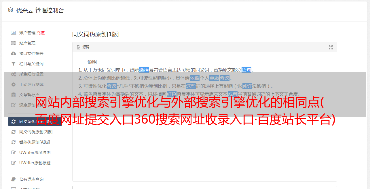 优采云 发布时间: 2022-02-02 14:21网站内部搜索引擎优化与外部搜索引擎优化的相同点(