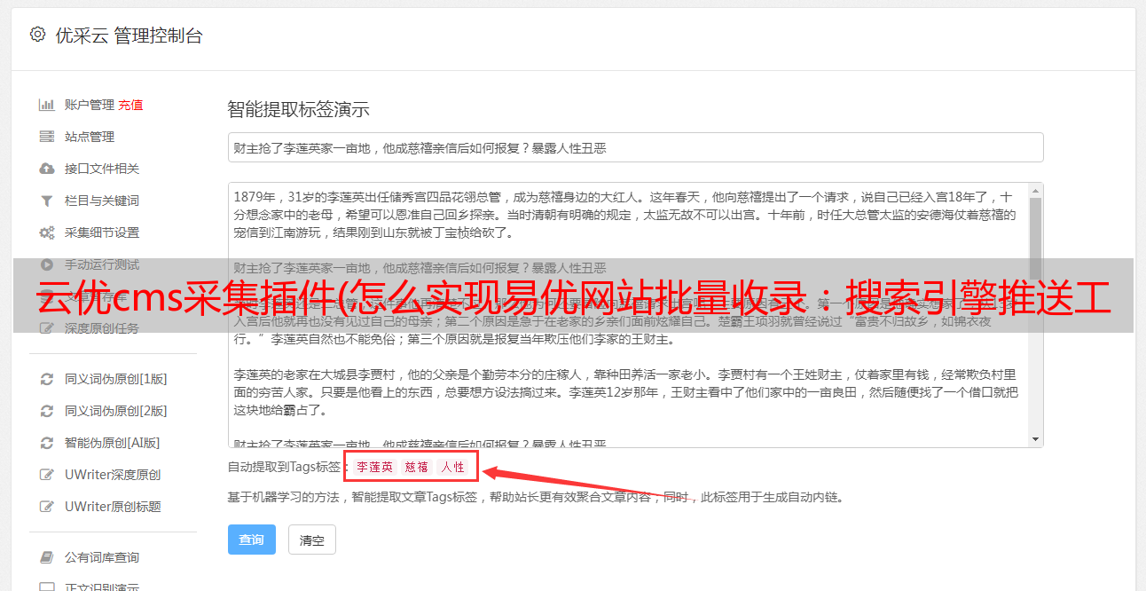 云优cms采集插件(怎么实现易优网站批量收录:搜索引擎推送工具批量管理)
