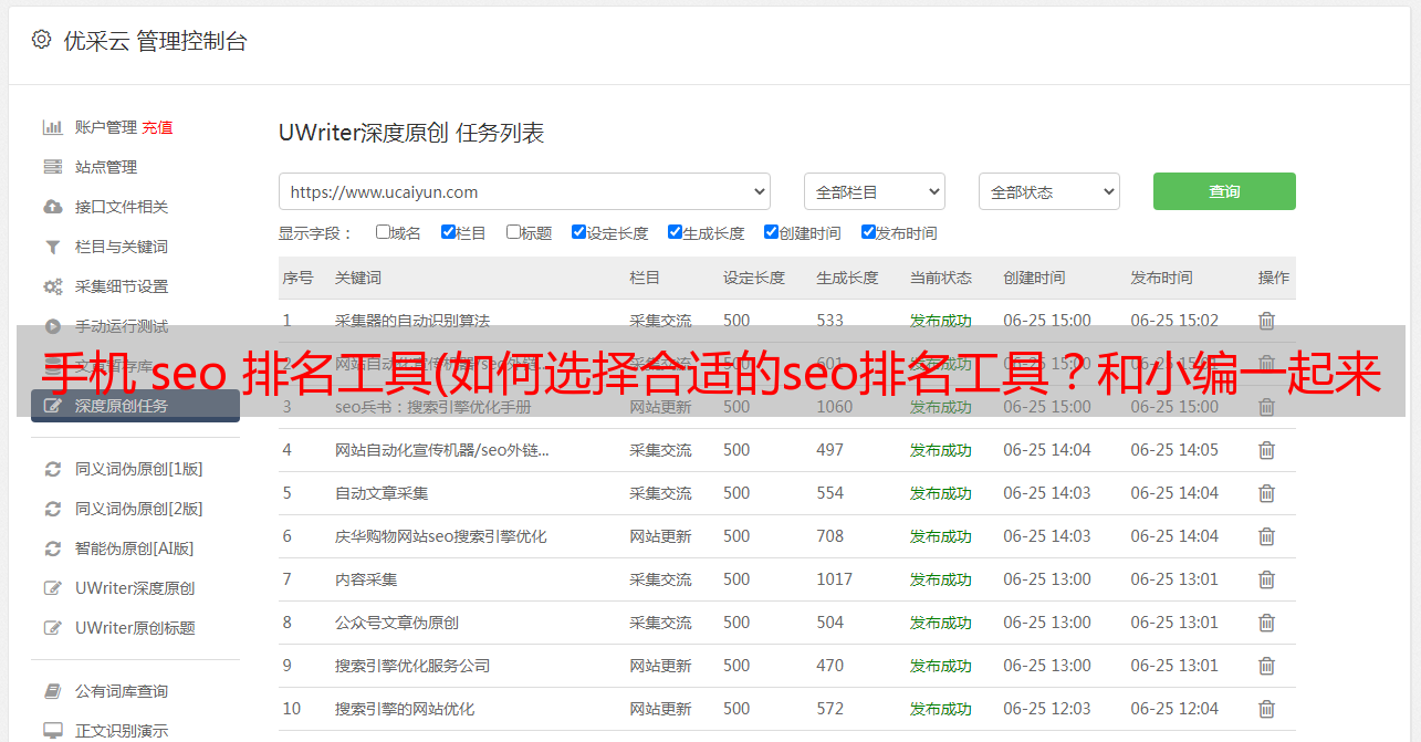 优采云 发布时间: 2022-02-02 19:03手机 seo 排名工具(如何选择合适的seo排名工具?和小编一起来看下)