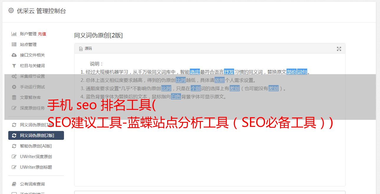 手机 seo 排名工具( SEO建议工具-蓝蝶站点分析工具(SEO必备工具))