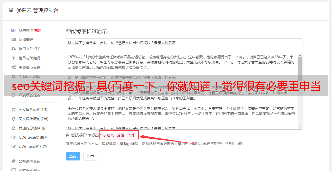 “百度,你就知道了!” 它不仅是全球最大的中文搜索引擎百度,还是一个搜索指南。输入指令可以立即找到用户想要的搜索结果。该命令在 SEO 优化中通常称为 关键词。显然,网站想要获得好的排名,吸引更多的访问量,首先要解决的就是如何挖掘快照排名,有利于引流的关键词,什么是最受追捧的-在 关键词 挖矿工具之后?