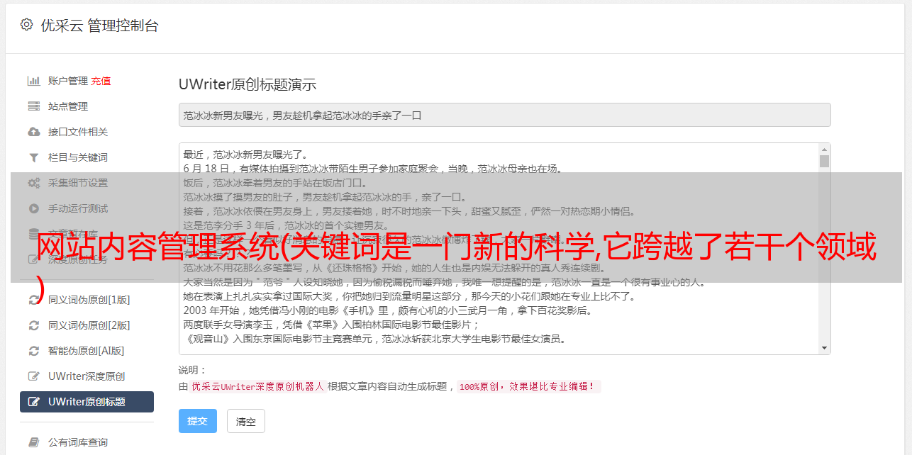 优采云 发布时间: 2022-02-03 20:18网站内容管理系统(关键词是一门新的科学,它跨越了若干个领域