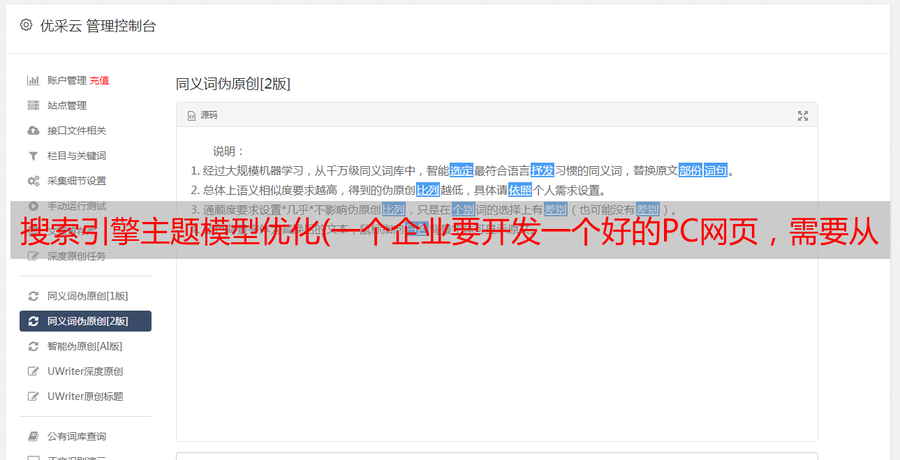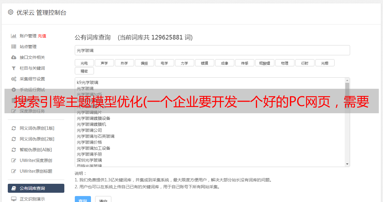 优采云 发布时间: 2022-02-03 21:10搜索引擎主题模型优化(一个企业要开发一个好的PC网页,需要从两个方面考虑)