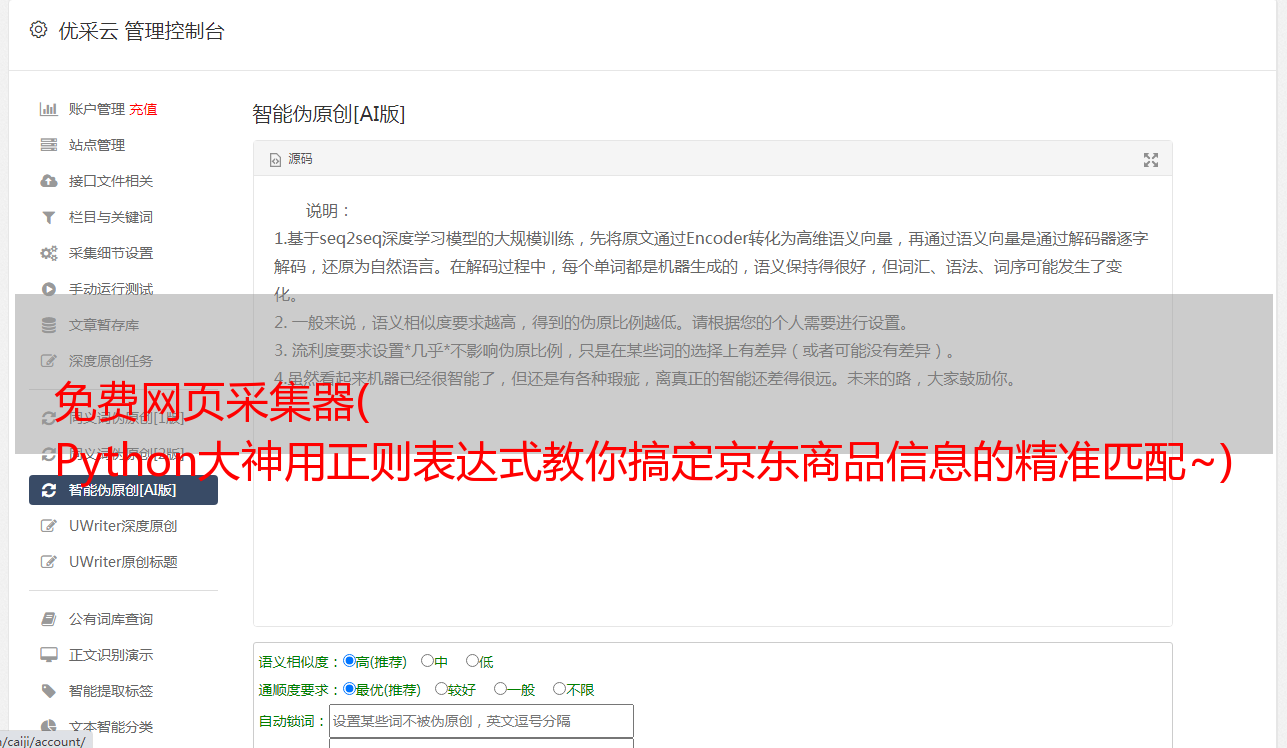 免费网页采集器( Python大神用正则表达式教你搞定京东商品信息的精准匹配~)