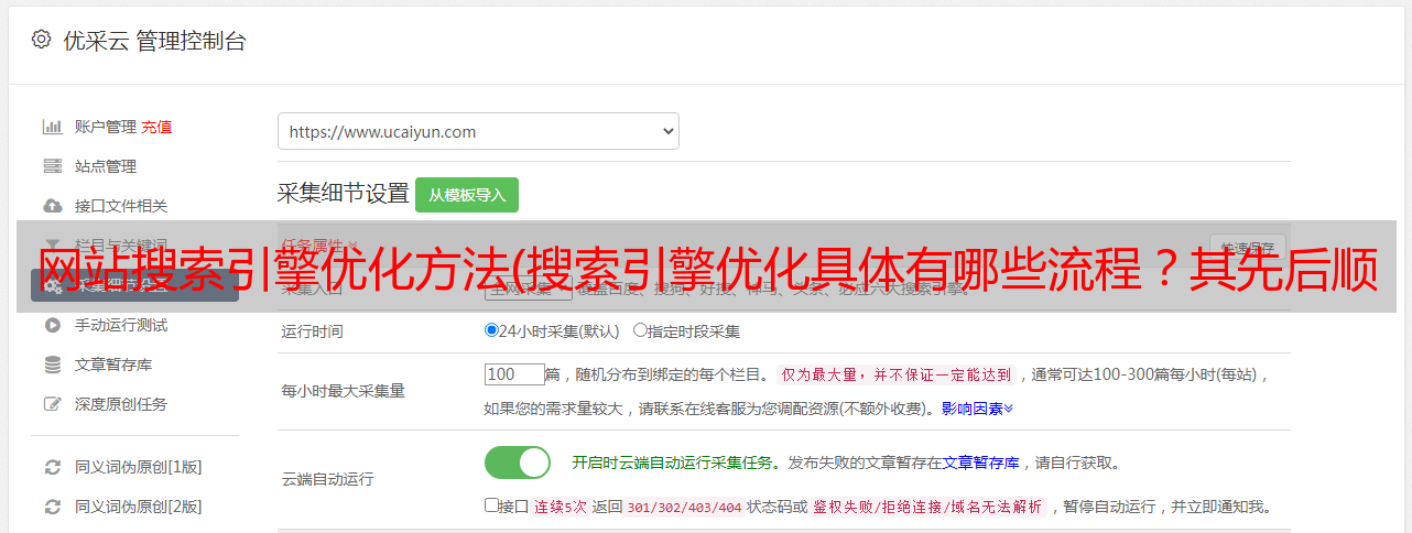 搜索引擎优化的过程主要分为六个步骤。首先,我们需要努力挖掘关键词。挖掘有价值的 关键词。从用户的角度考虑用户的搜索需求是一种快速排名工具,可以提高页面排名到首页,从而获得稳定的流量。同时,我们将网站绑定到站长后台,方便查看网站的最新状态。在后期网站的维护过程中,要注意监控。关键词排名变化,及时发现问题,做出相应调整。