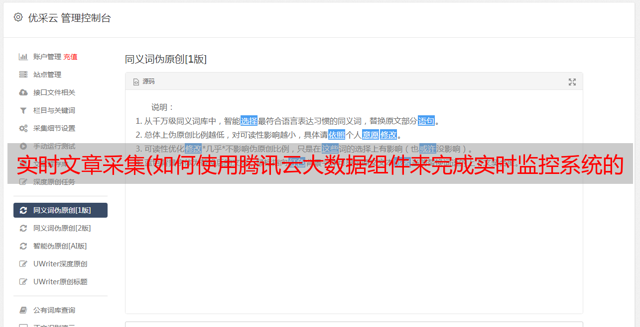 优采云 发布时间: 2022-02-04 14:04实时文章采集(如何使用腾讯云大数据组件来完成实时监控系统的设计和实现)