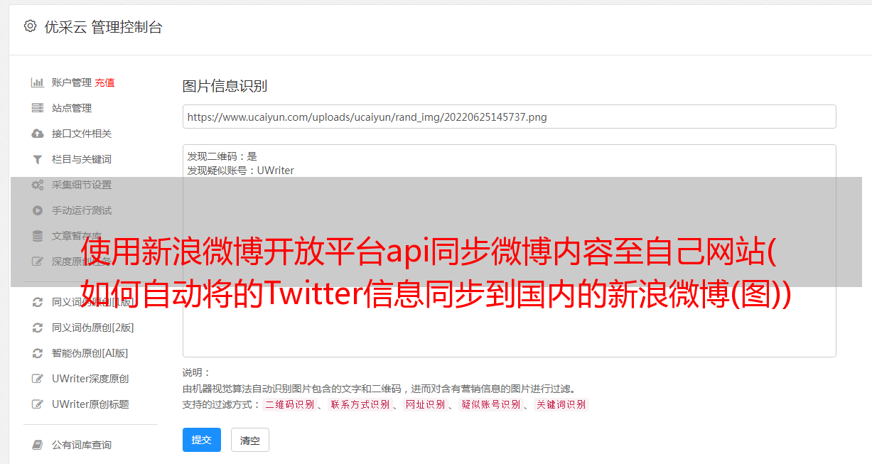优采云 发布时间: 2022-02-04 21:14使用新浪微博开放平台api同步微博内容至自己网站(