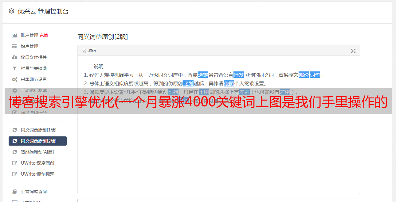 优采云 发布时间: 2022-02-04 22:18博客搜索引擎优化(一个月暴涨4000关键词上图是我们手里操作的网站)