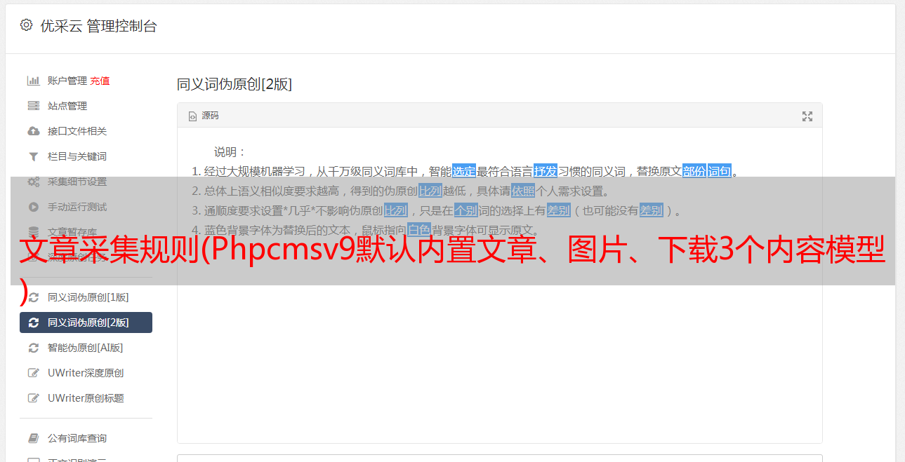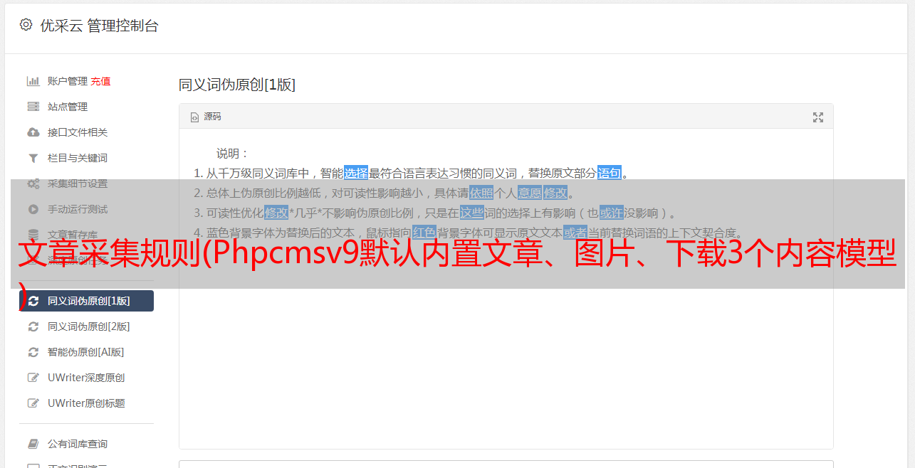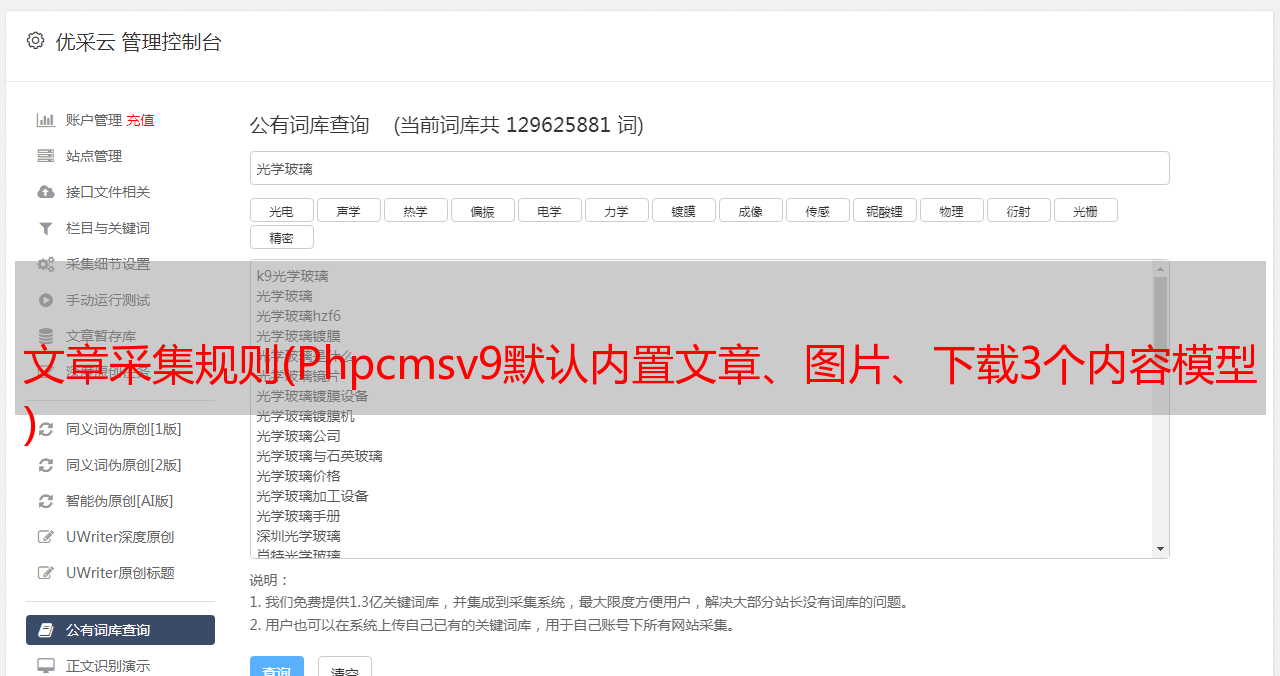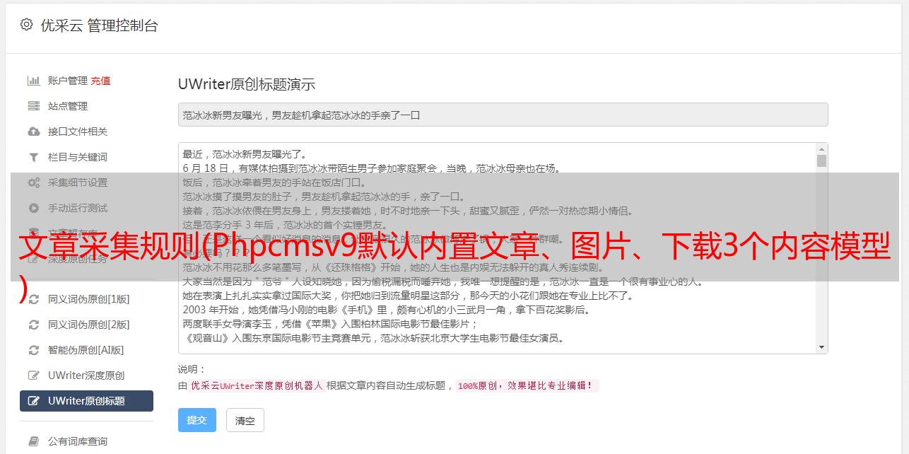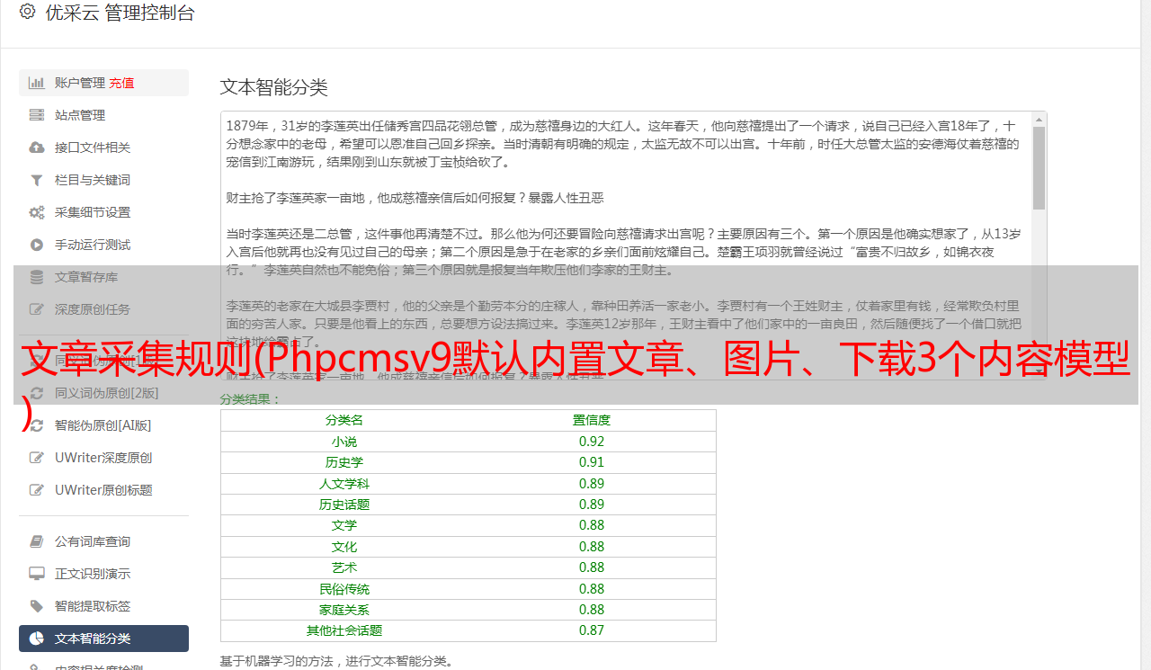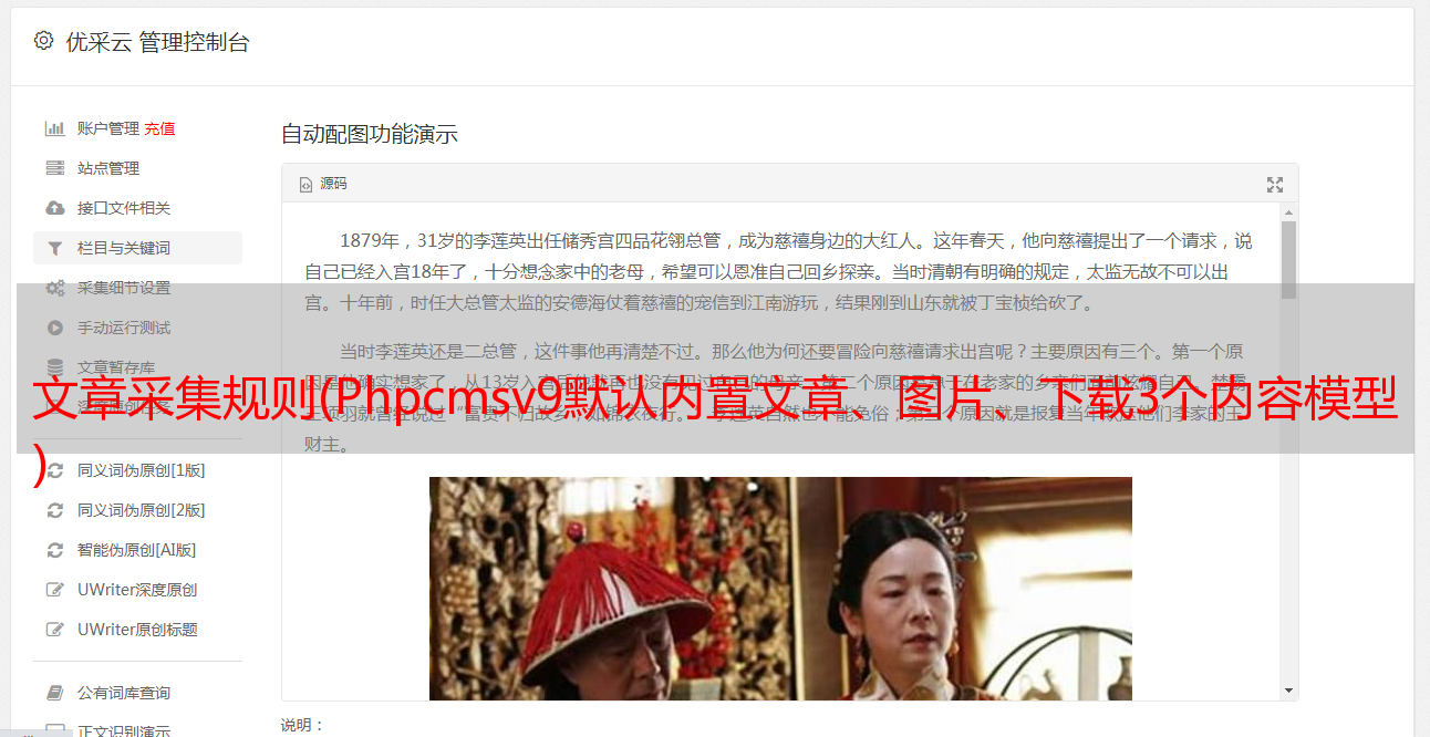 文章采集规则(Phpcmsv9默认内置文章、图片、下载3个内容模型 )