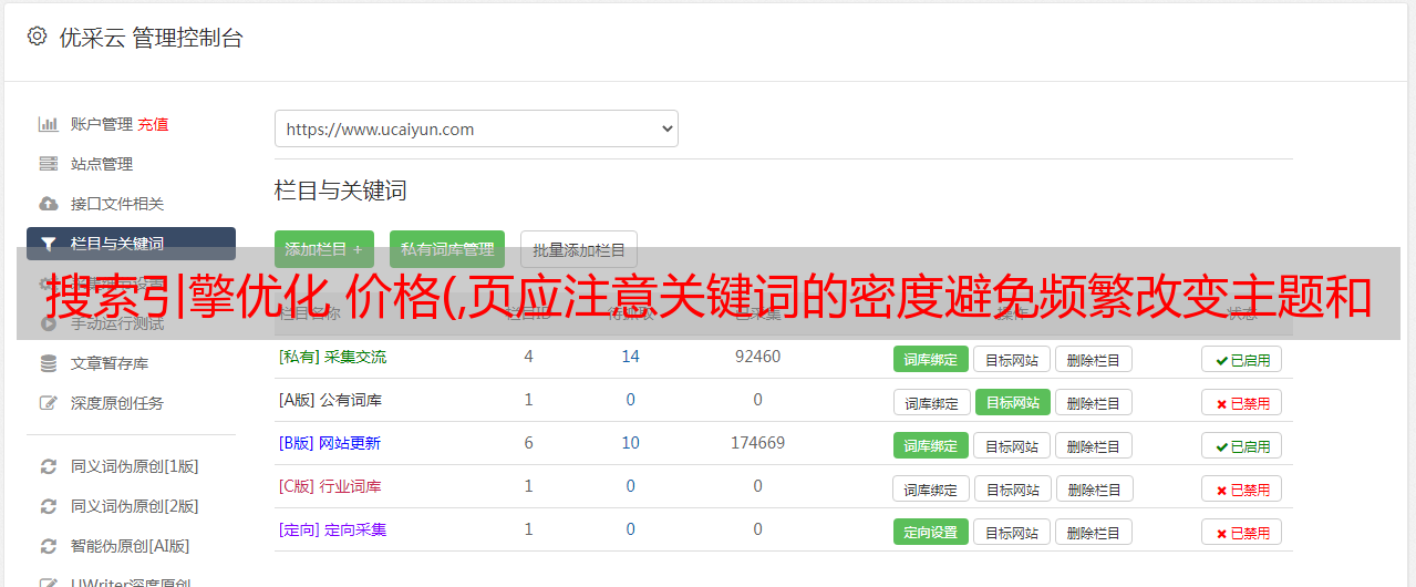 优采云 发布时间: 2022-02-05 08:09搜索引擎优化 价格(,页应注意关键词的密度避免频繁改变主题和关键词密度)
