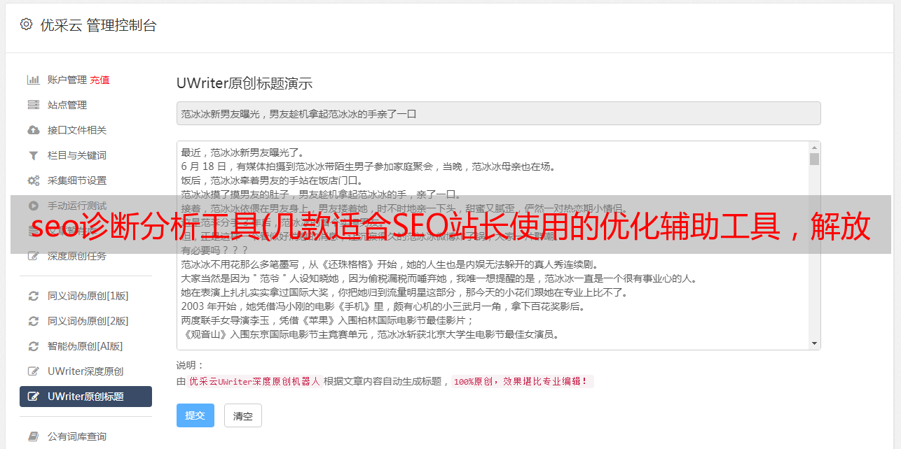 优采云 发布时间: 2022-02-06 00:02seo诊断分析工具(几款适合SEO站长使用的优化辅助工具,解放双手机械行为)
