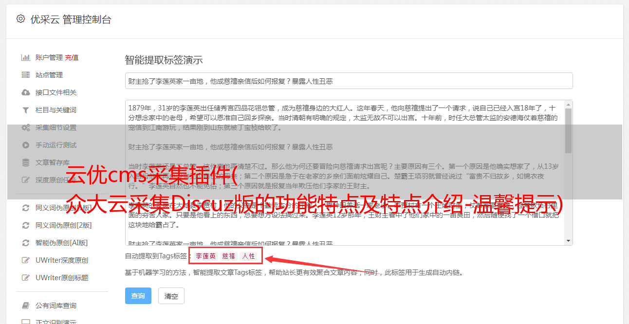 云优cms采集插件( 众大云采集Discuz版的功能特点及特点介绍-温馨提示)