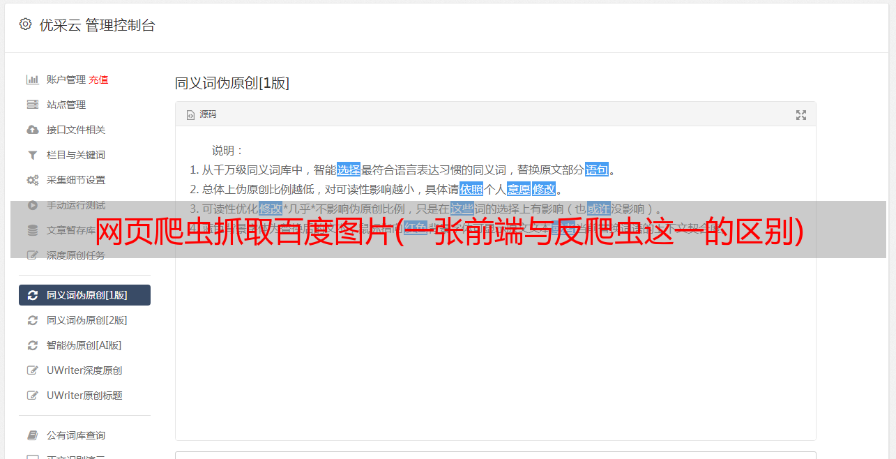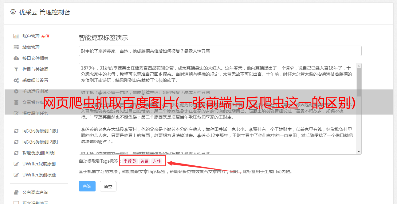 优采云 发布时间: 2022-02-06 21:23网页爬虫抓取百度图片(一张前端与反爬虫这一的区别)
