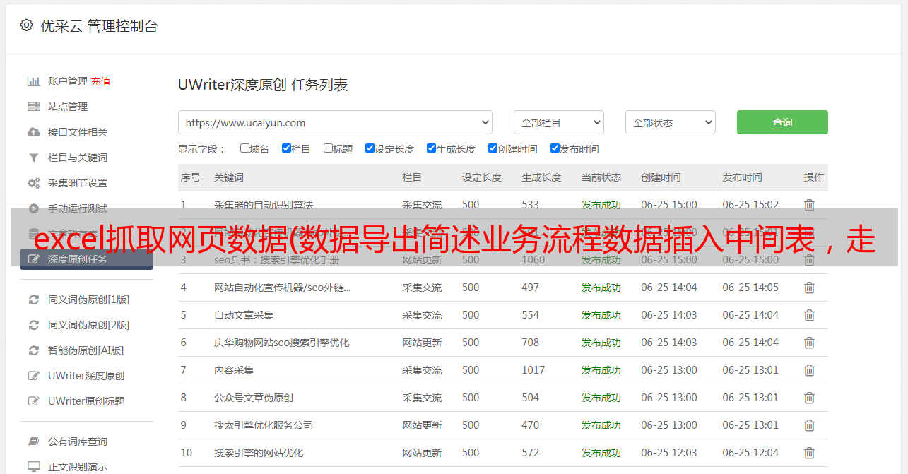 优采云 发布时间: 2022-02-07 03:06excel抓取网页数据(数据导出简述业务流程数据插入中间表,走产品流程)
