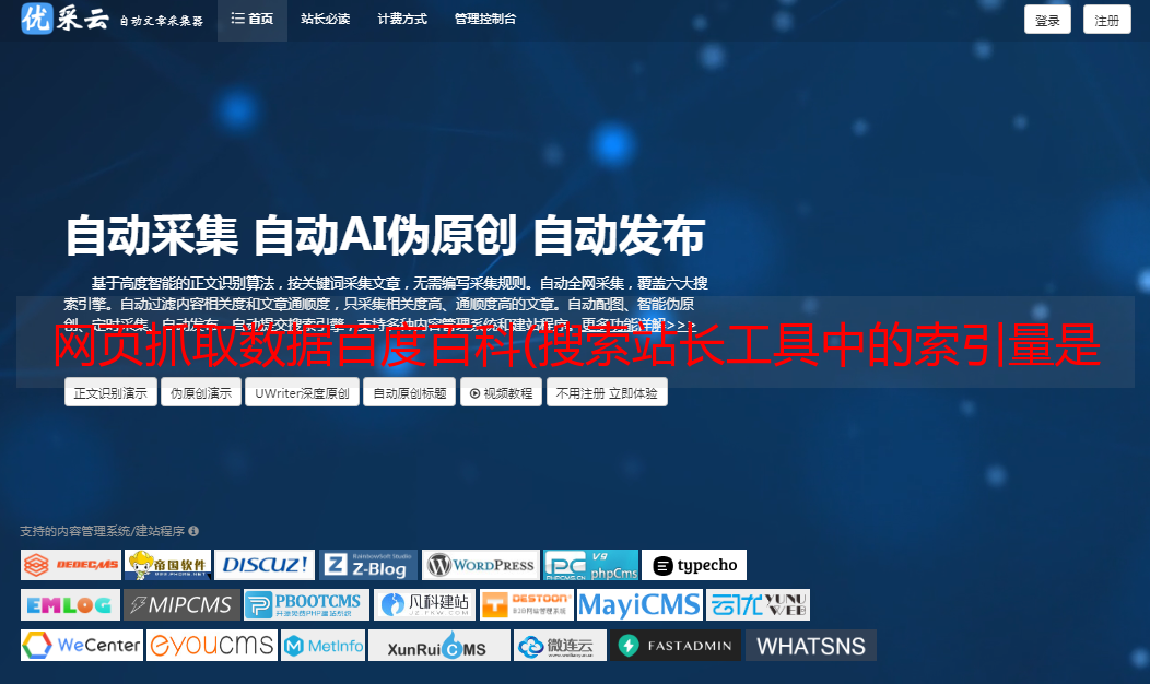 优采云 发布时间: 2022-02-07 09:06网页抓取数据百度百科(搜索站长工具中的索引量是什么?怎么处理?)
