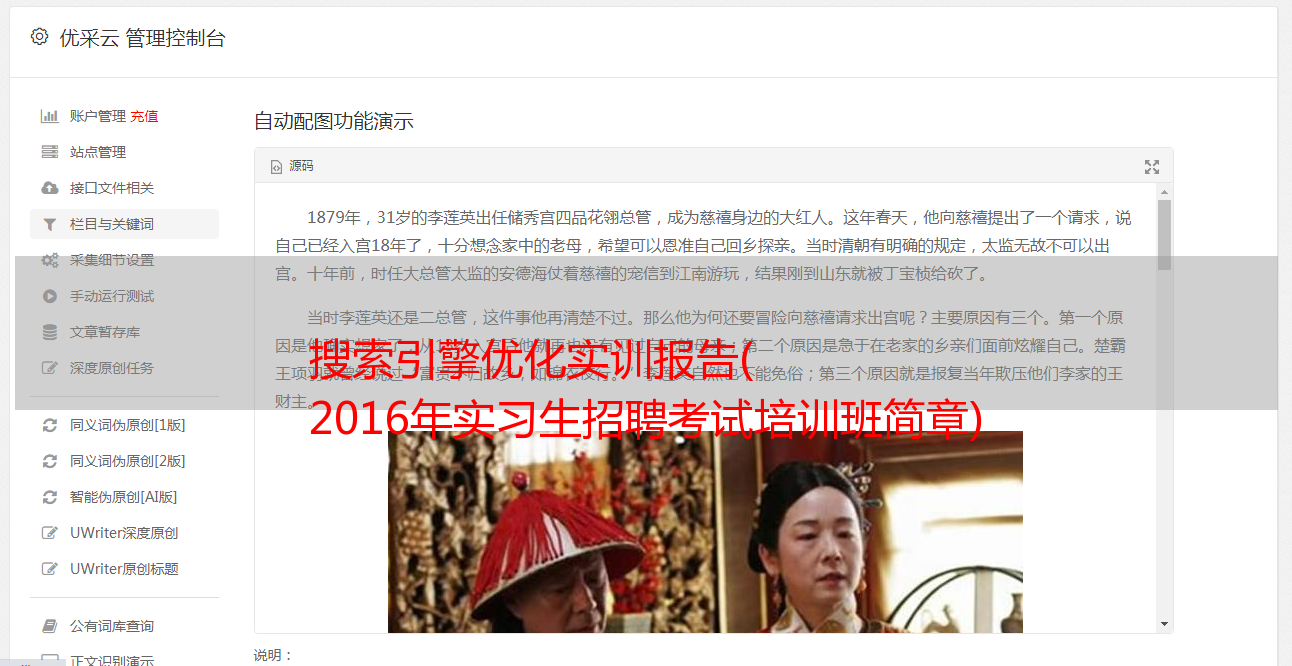 优采云 发布时间: 2022-02-07 10:10搜索引擎优化实训报告(