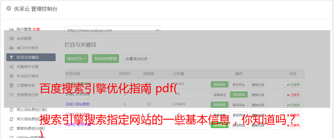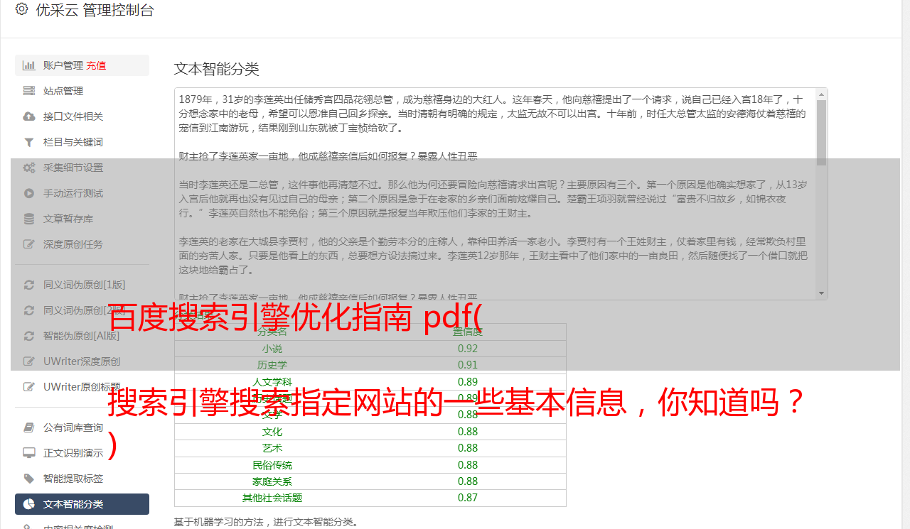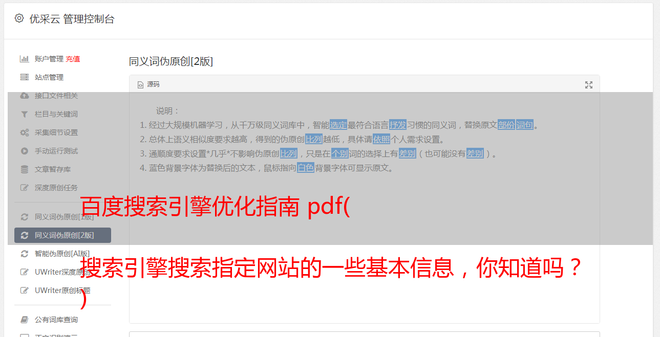 优采云 发布时间: 2022-02-07 15:14百度搜索引擎优化指南 pdf(