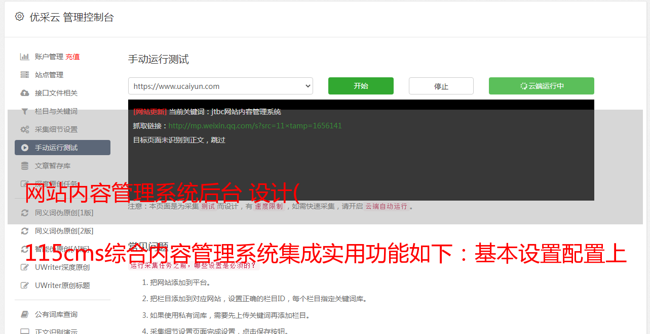 网站内容管理系统后台 设计( 115cms综合内容管理系统集成实用功能如下:基本设置配置上传文件)