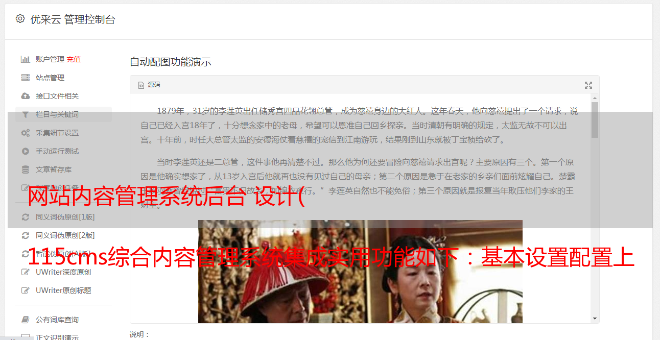 115cms综合内容管理系统集成实用功能如下:基本设置配置上传文件)