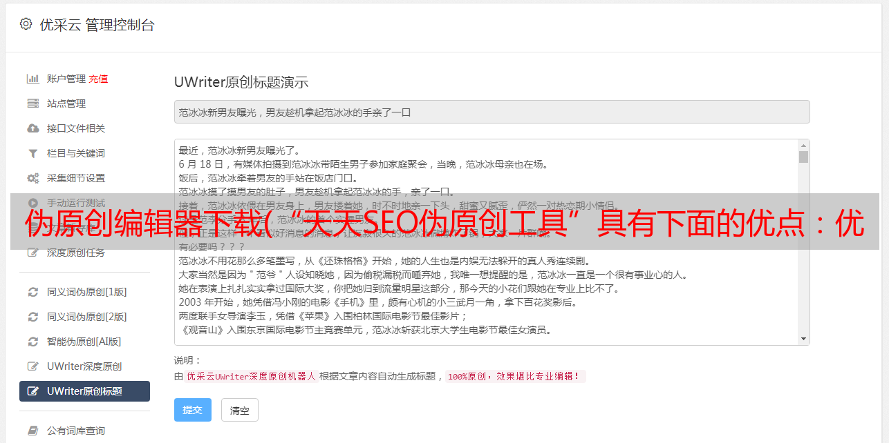 优采云 发布时间: 2022-02-08 01:10伪原创编辑器下载(“天天SEO伪原创工具”具有下面的优点:优点)