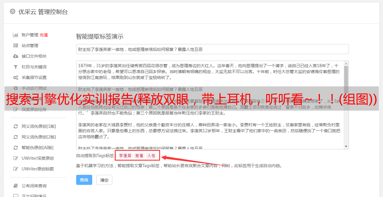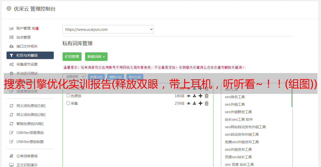 优采云 发布时间: 2022-02-08 17:13搜索引擎优化实训报告(释放双眼,带上耳机,听听看~!!(组图))