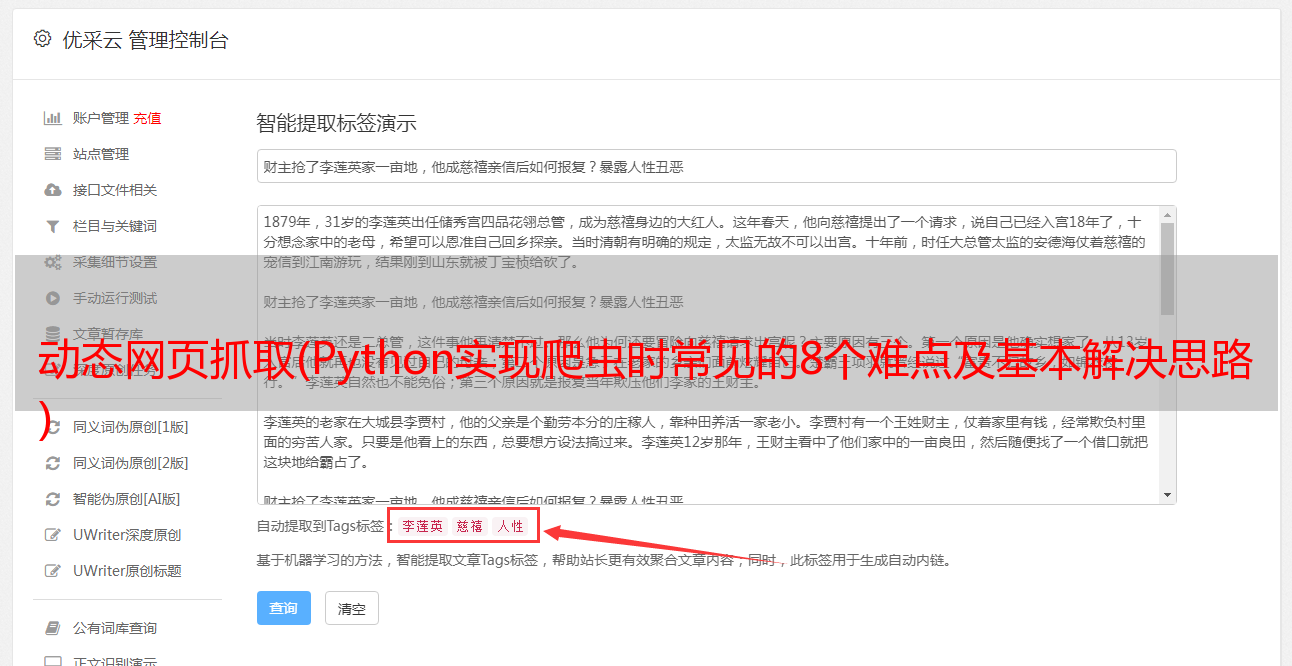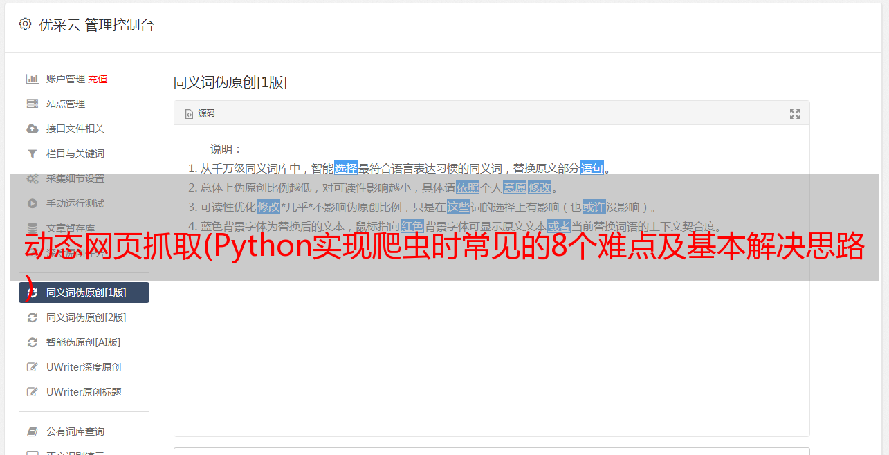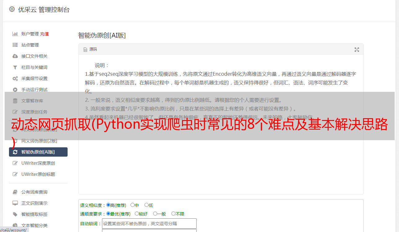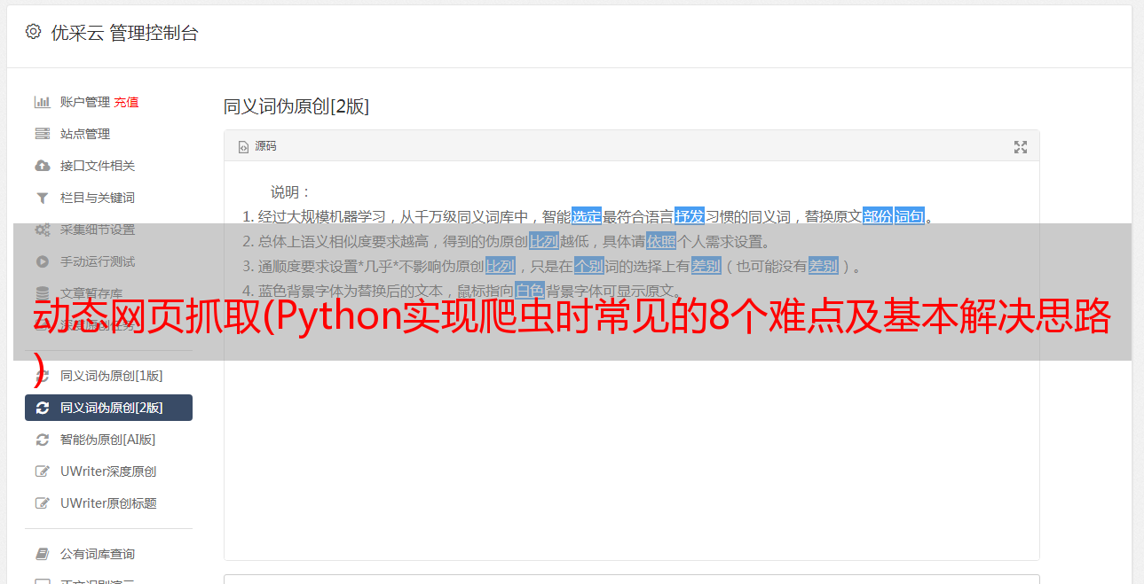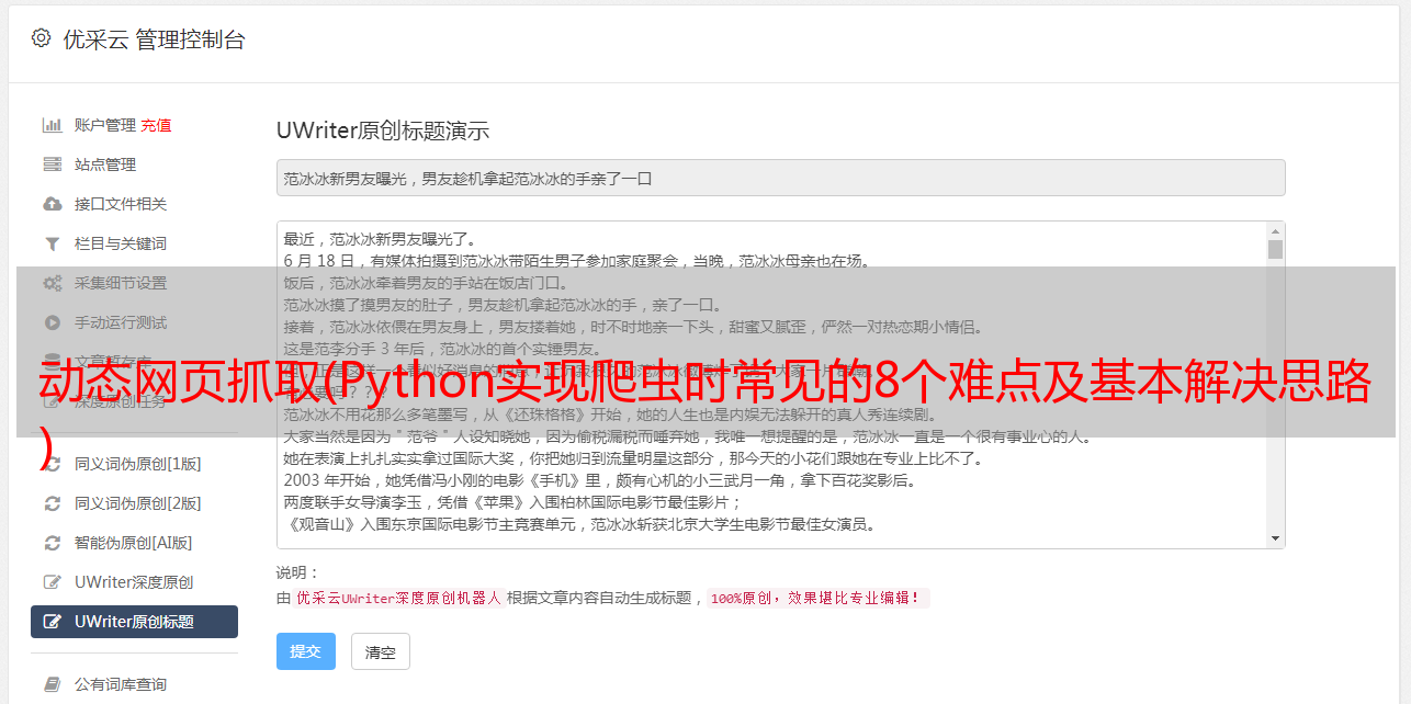 优采云 发布时间: 2022-02-08 21:19动态网页抓取(Python实现爬虫时常见的8个难点及基本解决思路
