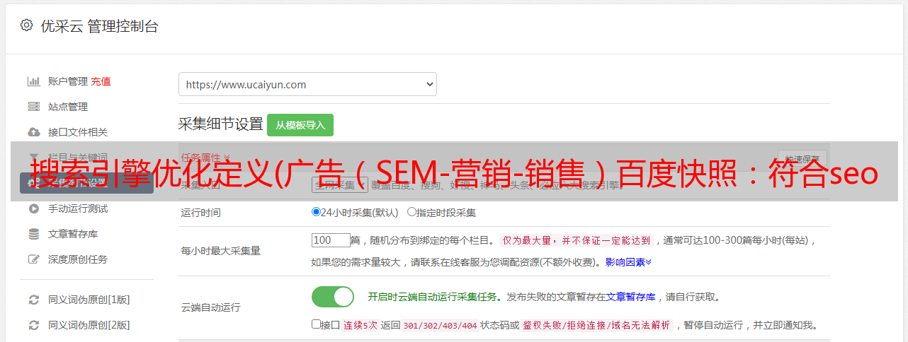 优采云 发布时间: 2022-02-08 22:00搜索引擎优化定义(广告(SEM-营销-销售)百度快照:符合seo搜索规则)