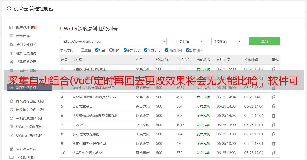 采集自动组合(vucf定时再回去更改效果将会无人能比哈,软件可代替手工发布)