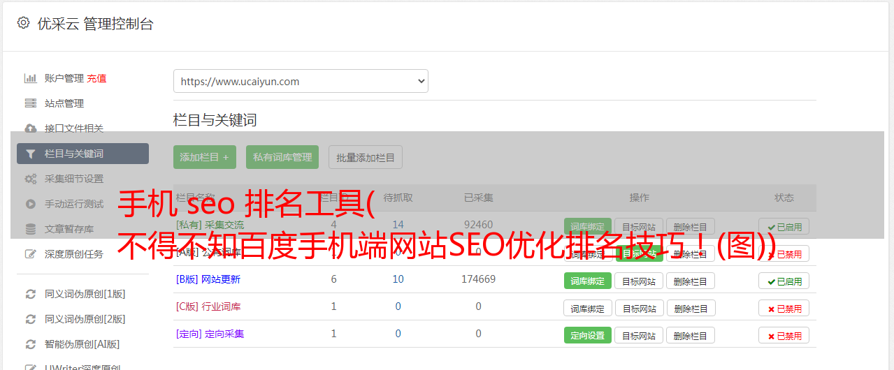 优采云 发布时间: 2022-02-09 11:30手机 seo 排名工具(