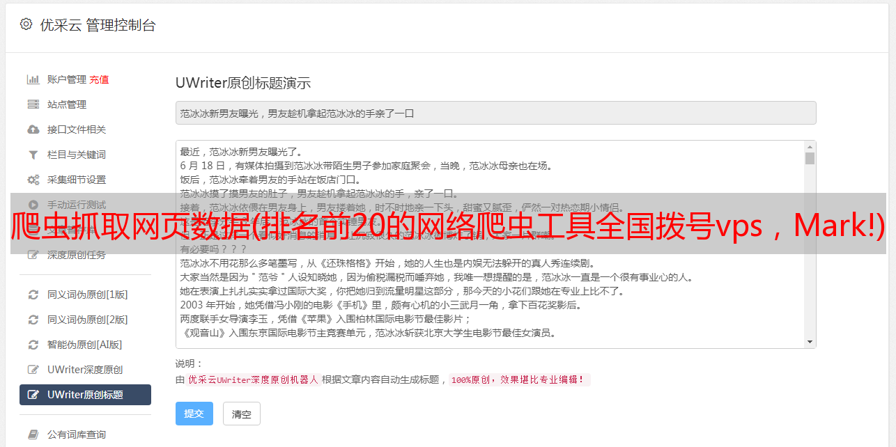 爬虫抓取网页数据(排名前20的网络爬虫工具全国拨号vps,Mark!)