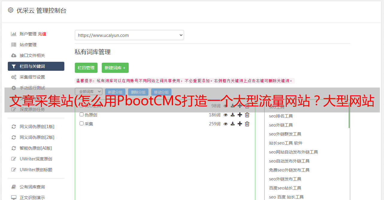 优采云 发布时间: 2022-02-10 00:15文章采集站(怎么用PbootCMS打造一个大型流量网站?大型网站的内容要如何构成