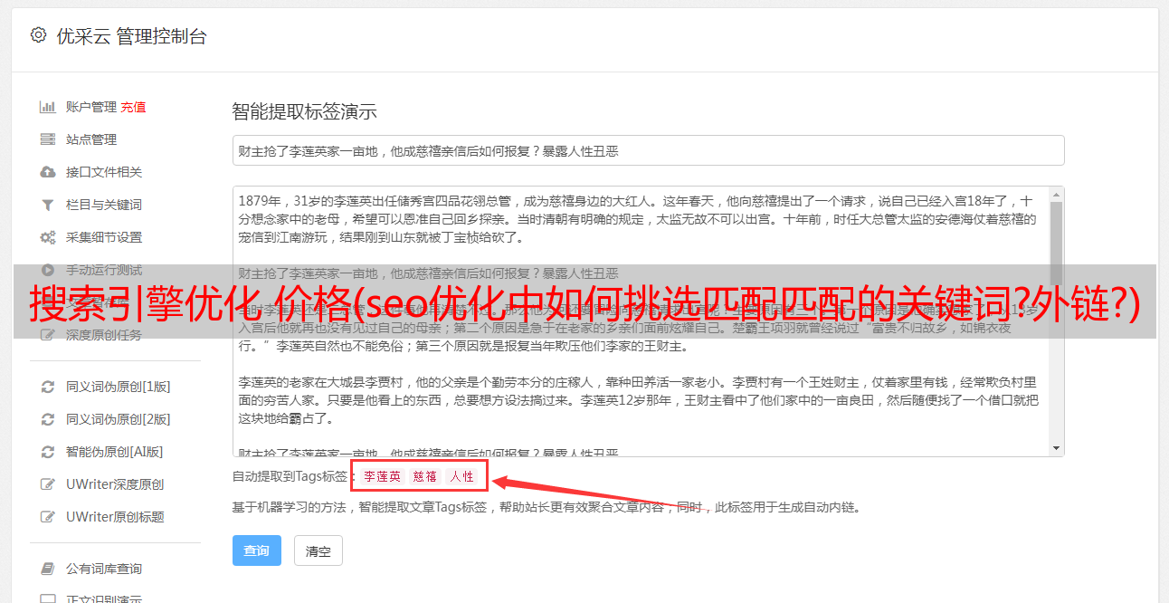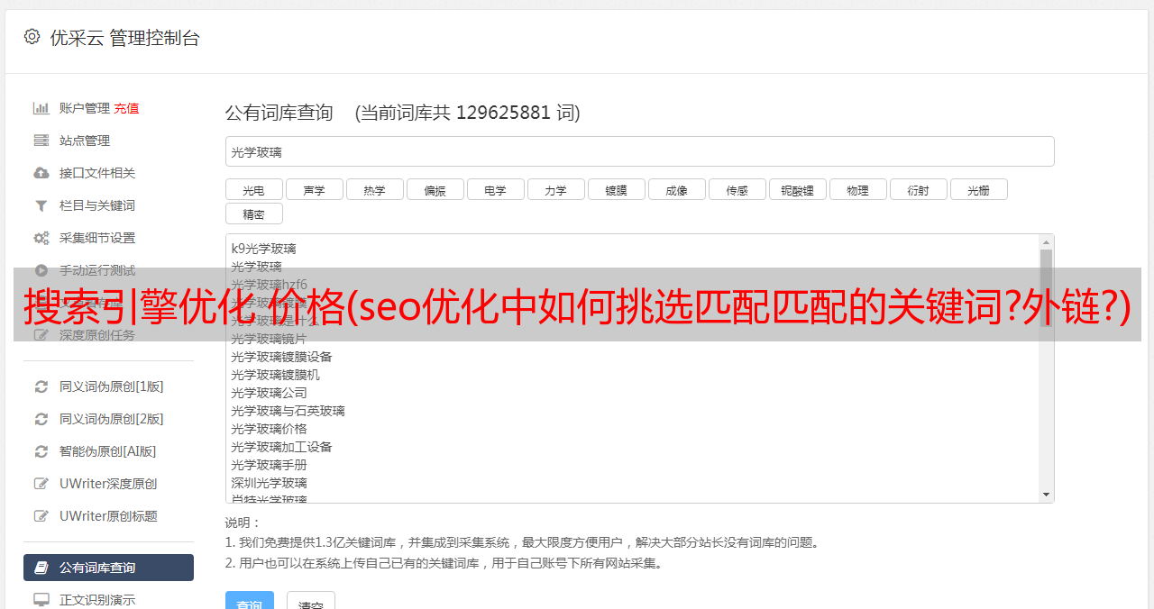 优采云 发布时间: 2022-02-10 08:03搜索引擎优化 价格(seo优化中如何挑选匹配匹配的关键词?外链?)