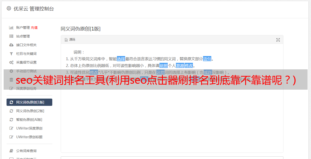 优采云 发布时间: 2022-02-11 01:22seo关键词排名工具(利用seo点击器刷排名到底靠不靠谱呢?)