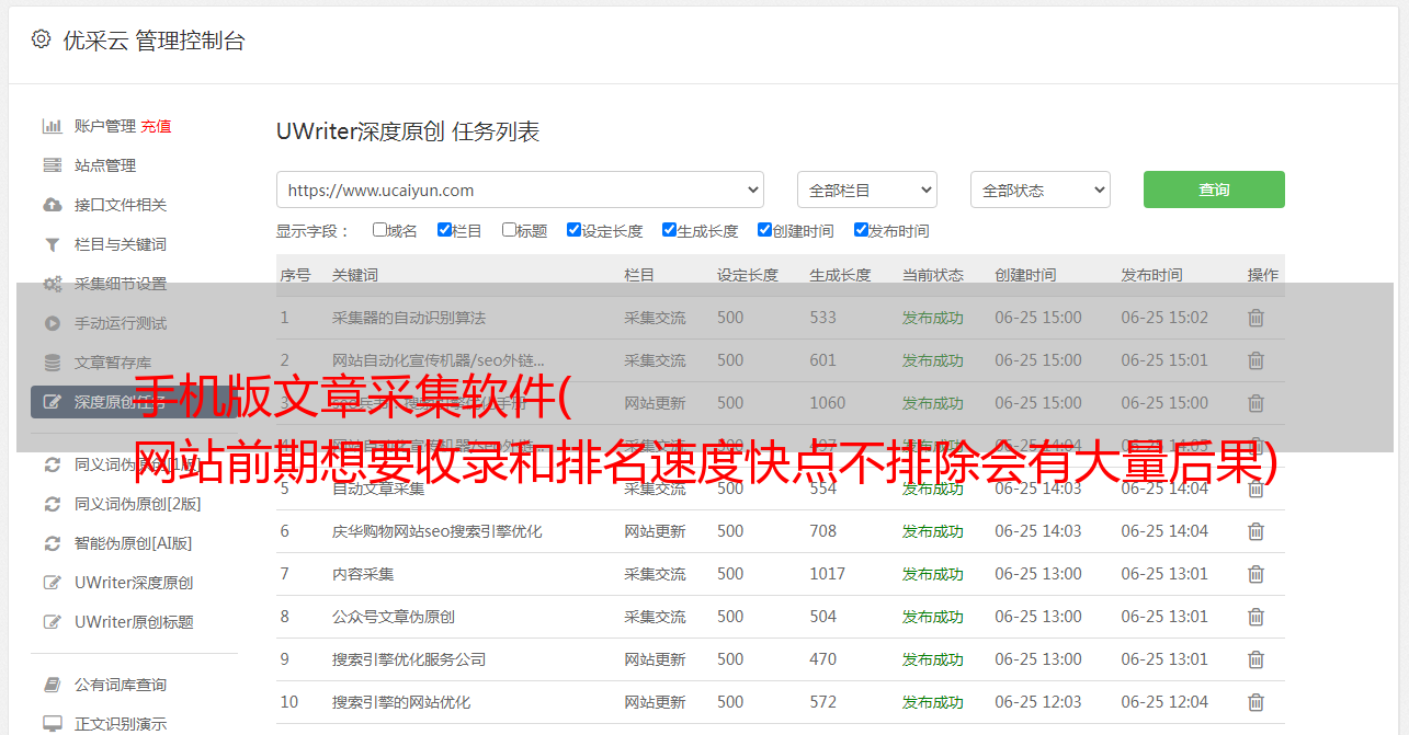 手机版文章采集软件( 网站前期想要收录和排名速度快点不排除会有大量后果)