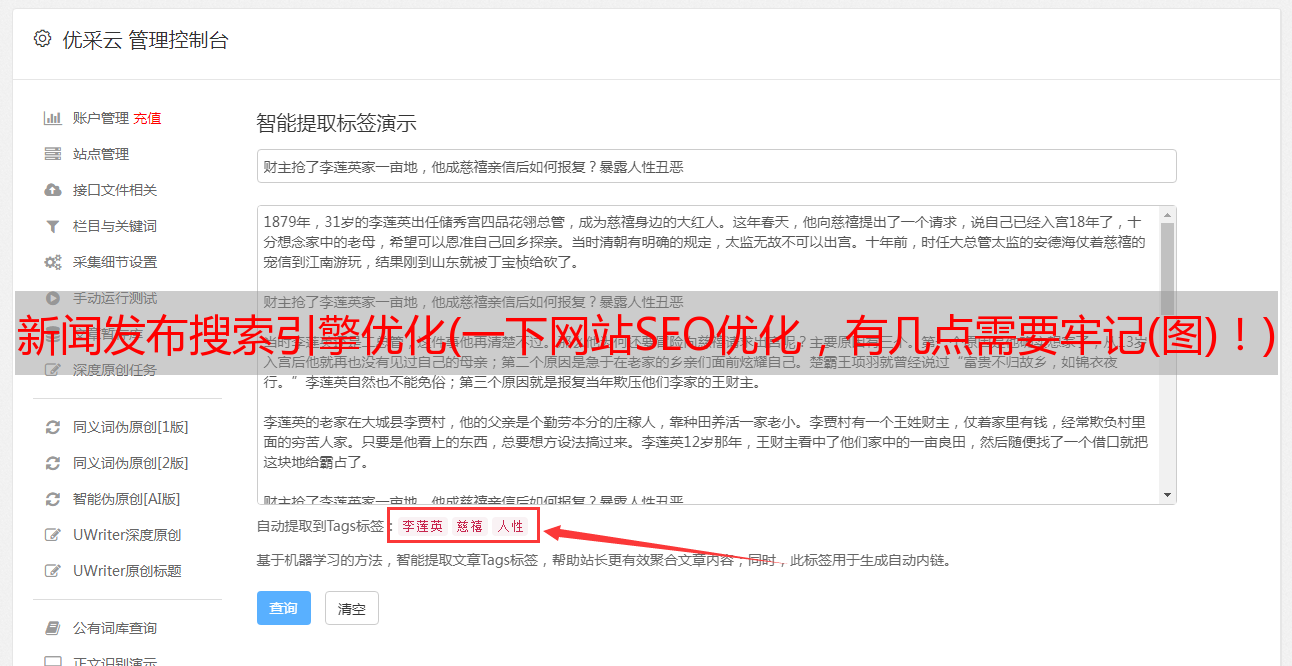 优采云 发布时间: 2022-02-11 05:11新闻发布搜索引擎优化(一下网站SEO优化,有几点需要牢记(图)!)