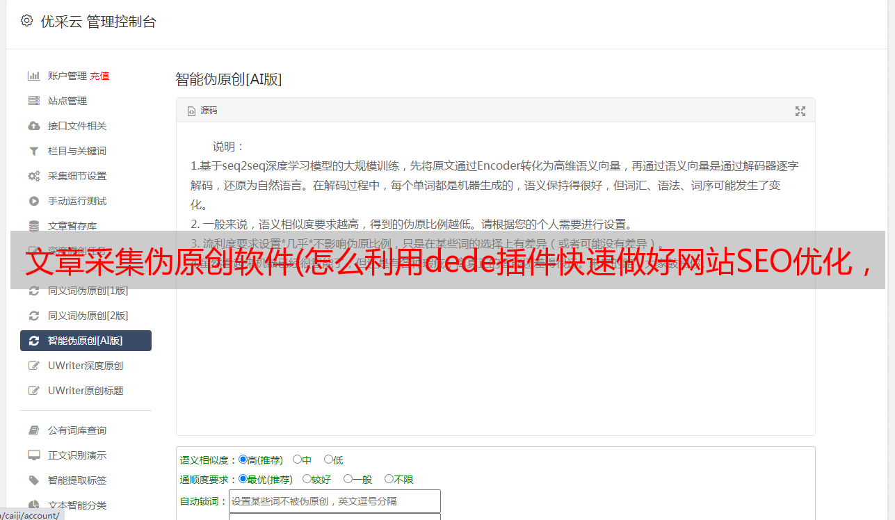 文章采集伪原创软件(怎么利用dede插件快速做好网站SEO优化,获得关键词排名以及流量 )