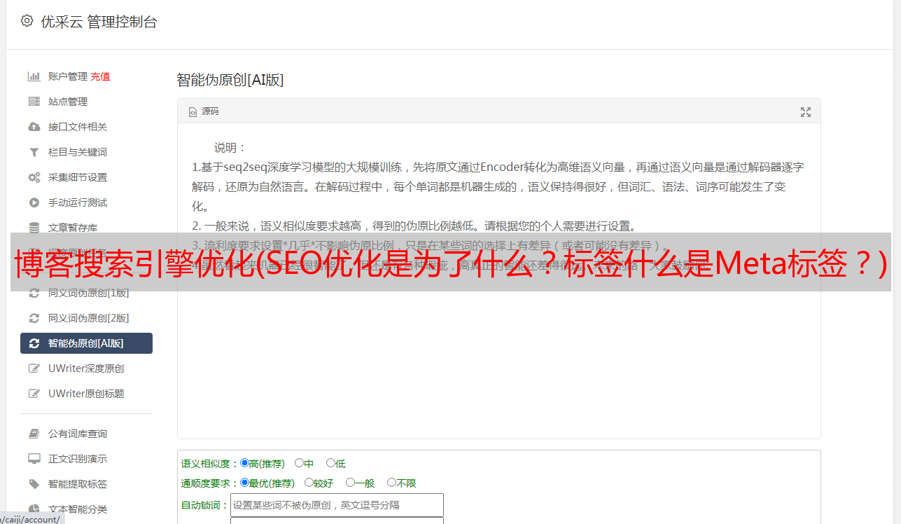 优采云 发布时间: 2022-02-11 20:03博客搜索引擎优化(SEO优化是为了什么?标签什么是Meta标签?)