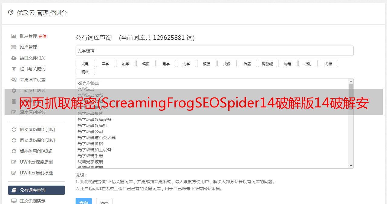 优采云 发布时间: 2022-02-11 21:09网页抓取解密(ScreamingFrogSEOSpider14破解版14破解安装教程下载)