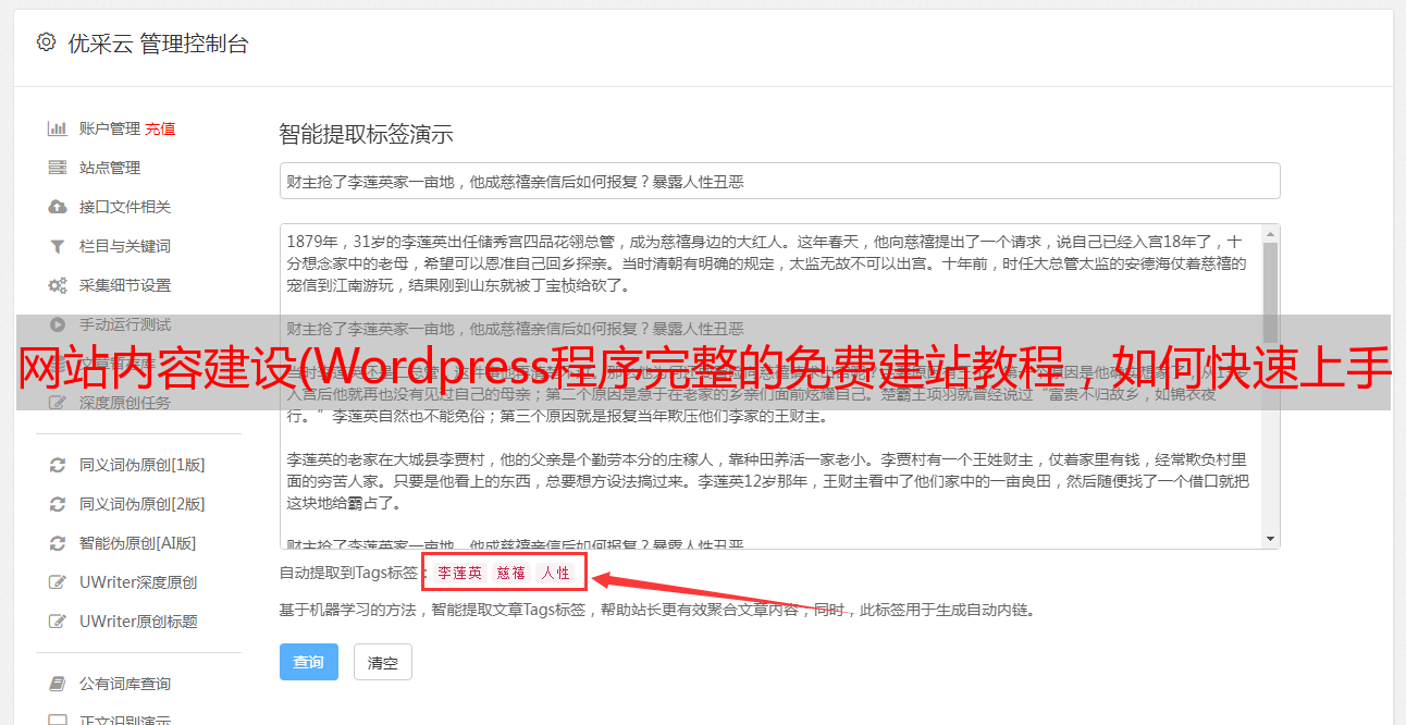 优采云 发布时间: 2022-02-12 12:04网站内容建设(Wordpress程序完整的免费建站教程,如何快速上手学会建站
