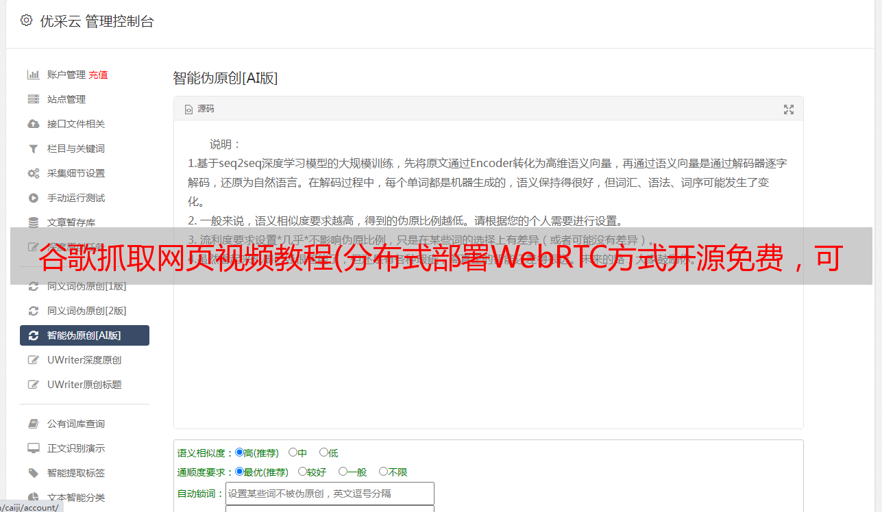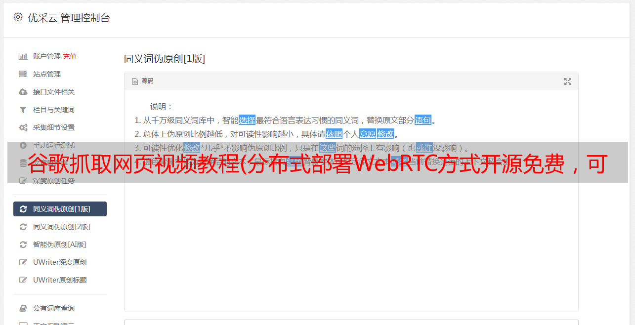 优采云 发布时间: 2022-02-12 16:09谷歌抓取网页视频教程(分布式部署WebRTC方式开源免费,可实现界面自定义修改开发)