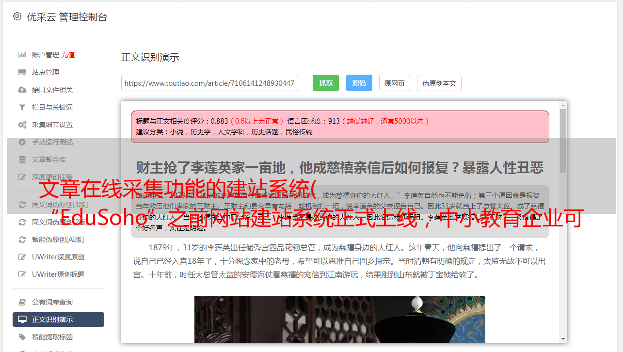 文章在线采集功能的建站系统( “EduSoho”之前网站建站系统正式上线,中小教育企业可建立“网校”)