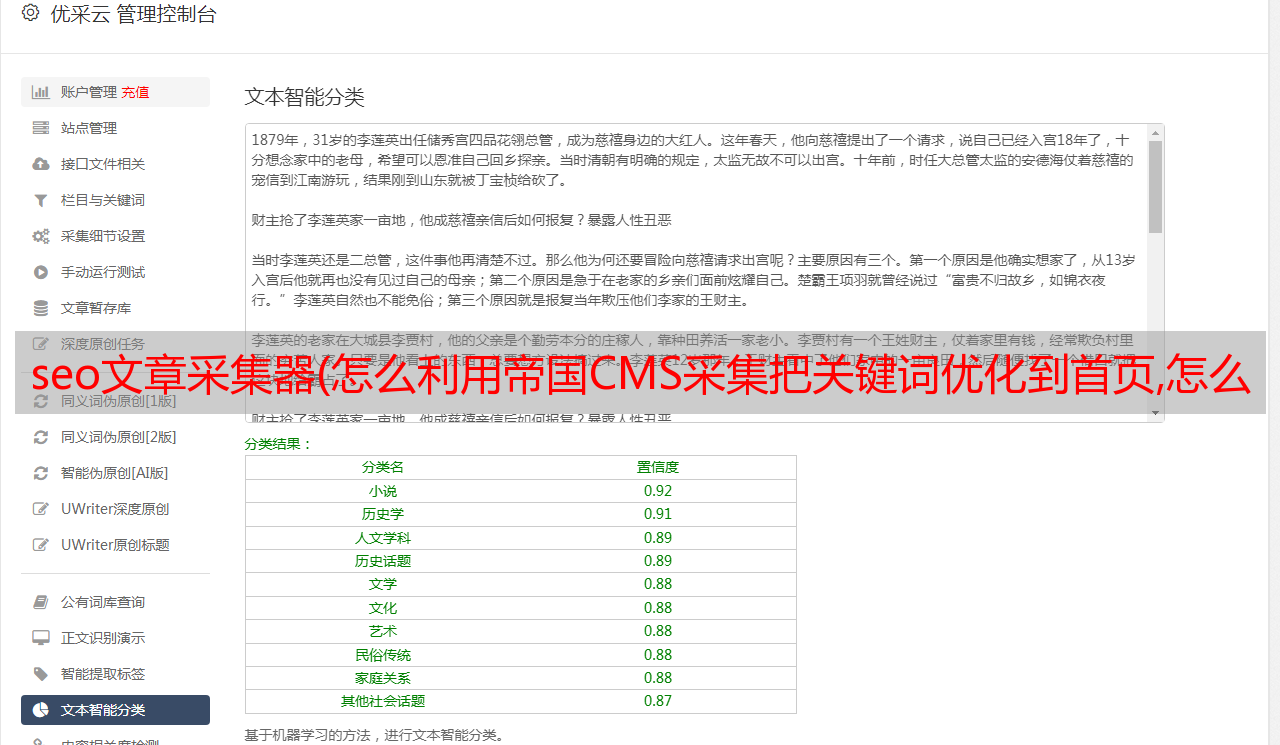 优采云 发布时间: 2022-02-12 17:12seo文章采集器(怎么利用帝国CMS采集把关键词优化到首页,怎么快速做到网站收录?