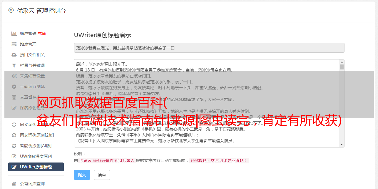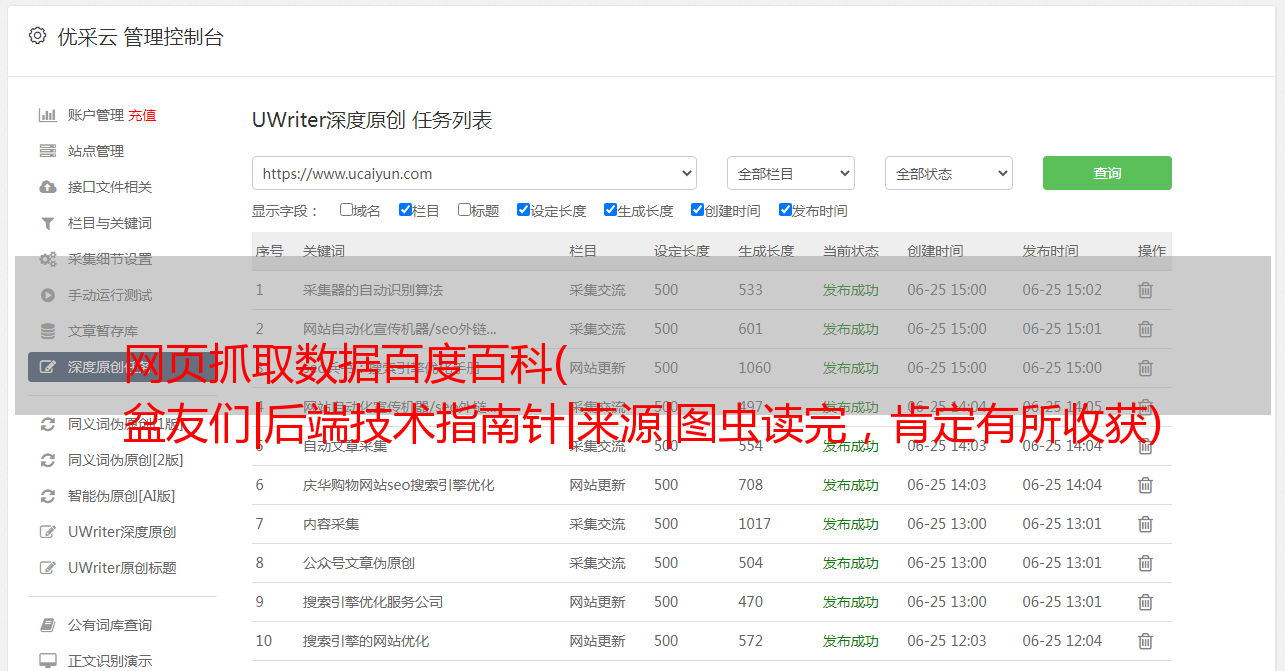 优采云 发布时间: 2022-02-12 17:23网页抓取数据百度百科(