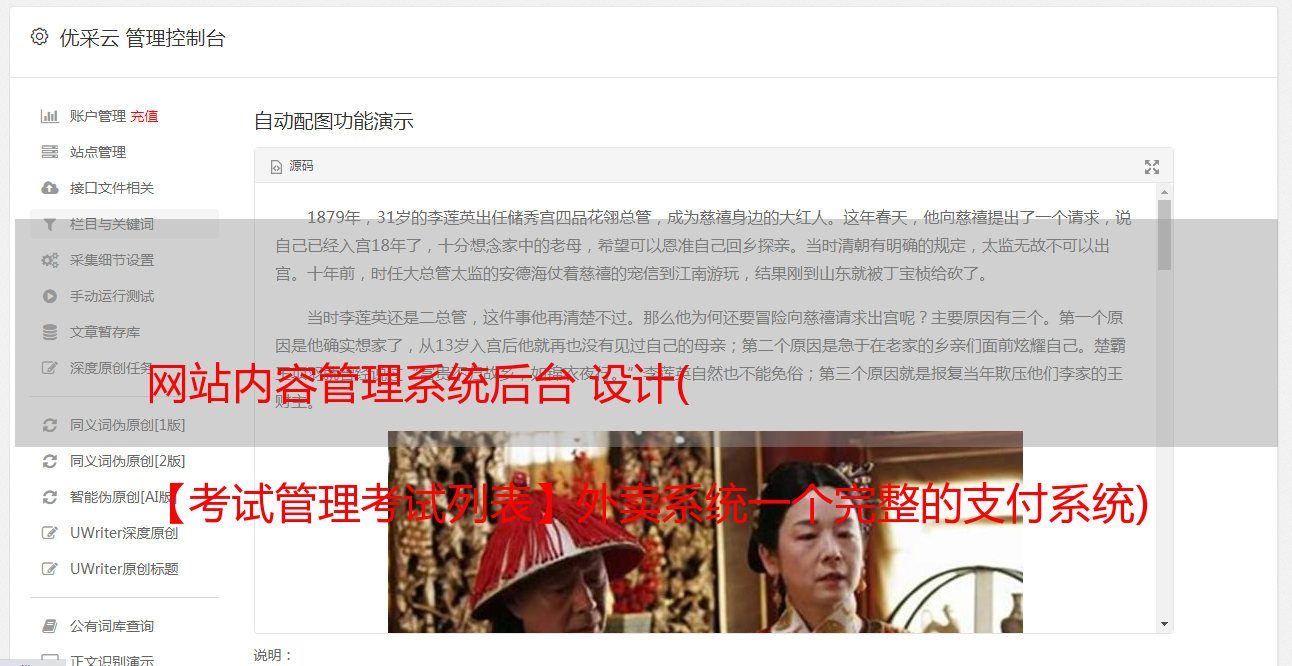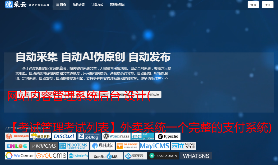 网站内容管理系统后台 设计( 【考试管理考试列表】外卖系统一个完整的支付系统)