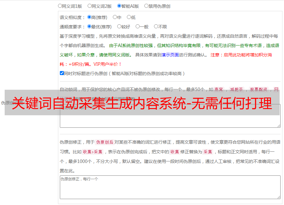 关键词自动采集生成内容系统-无需任何打理(如果选择|模式,会对生成的关键字中间用分隔符)
